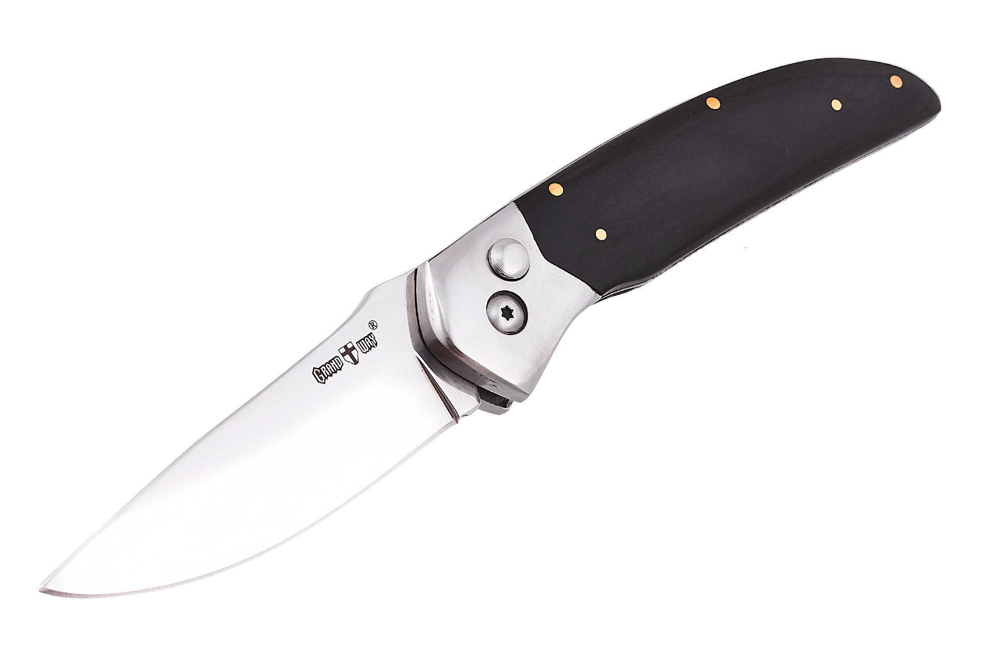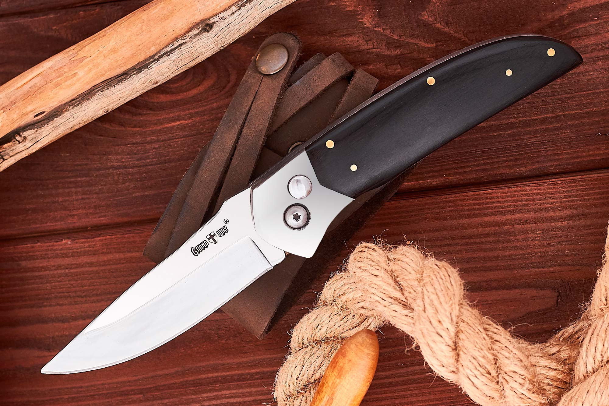 Grand Way 095 AKP – это модель выкидного ножа c кнопочной автоматической системой выброса клинка (баттон-лок), красивой, но исключительно функциональной рукояткой, снабженной вставками из натурального дерева.