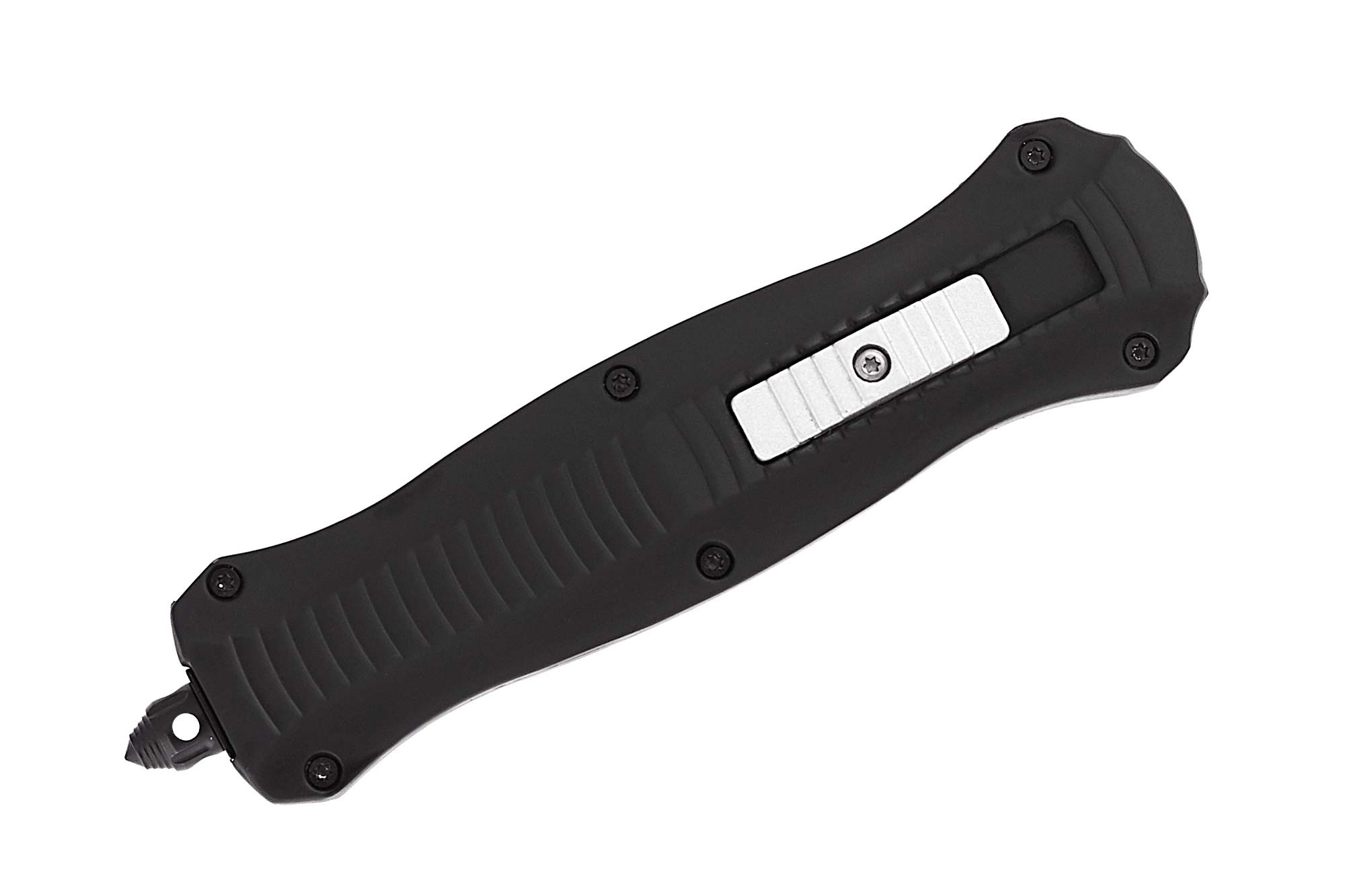 Стеклобой этого ножа-автомата – это также и гайка, крепящая клипсу к корпусу ножа, на ней же они имеется и отверстие под темляк, для реализации разных типов подвеса.