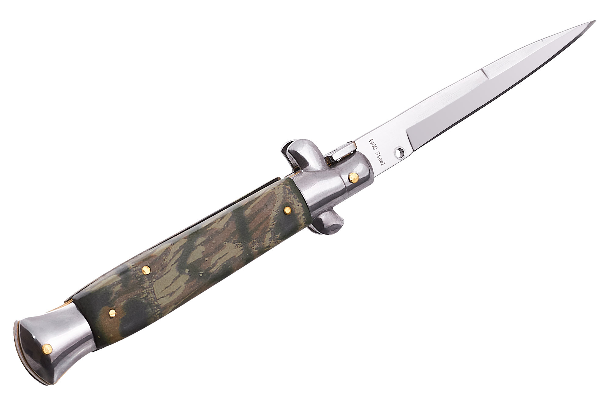 Выкидной нож 170201-15 является довольно точной репликой итальянского автоматического стилета. Этот тип ножей хорошо известен по всему миру и стал буквально архетипическим (во многом благодаря кинематографу). Так что данная модель «выкидушки» подойдёт не только тем, кто желает просто приобрести лёгкий и удобный складник, но и коллекционерам.