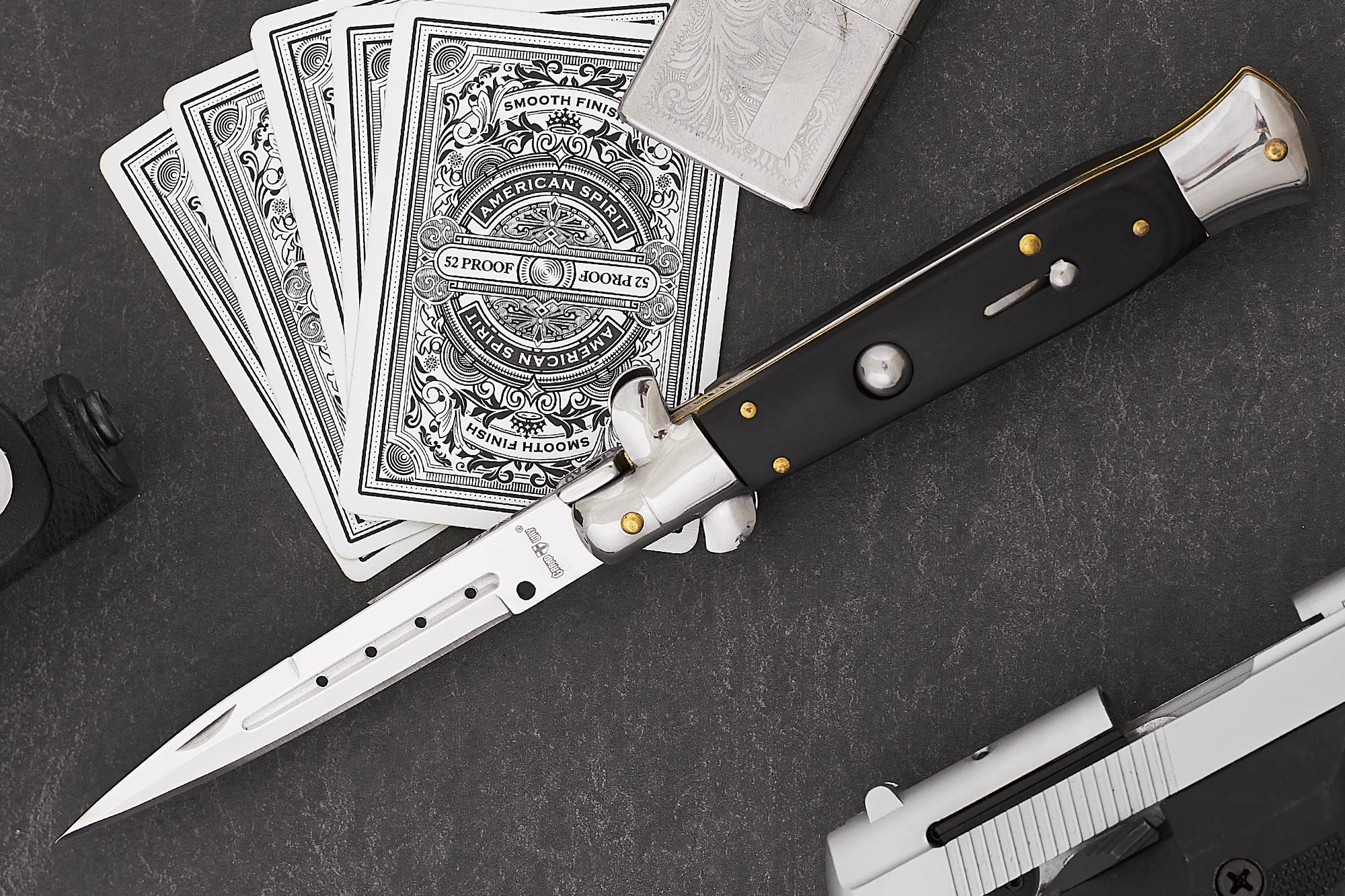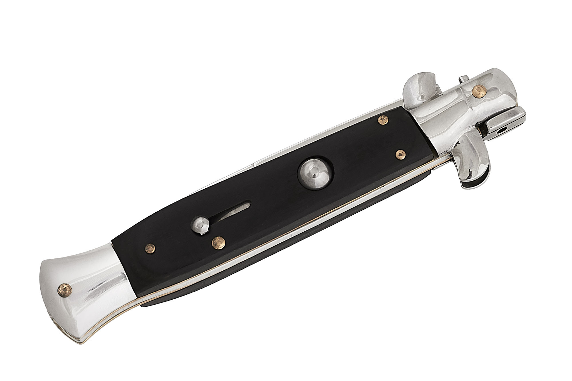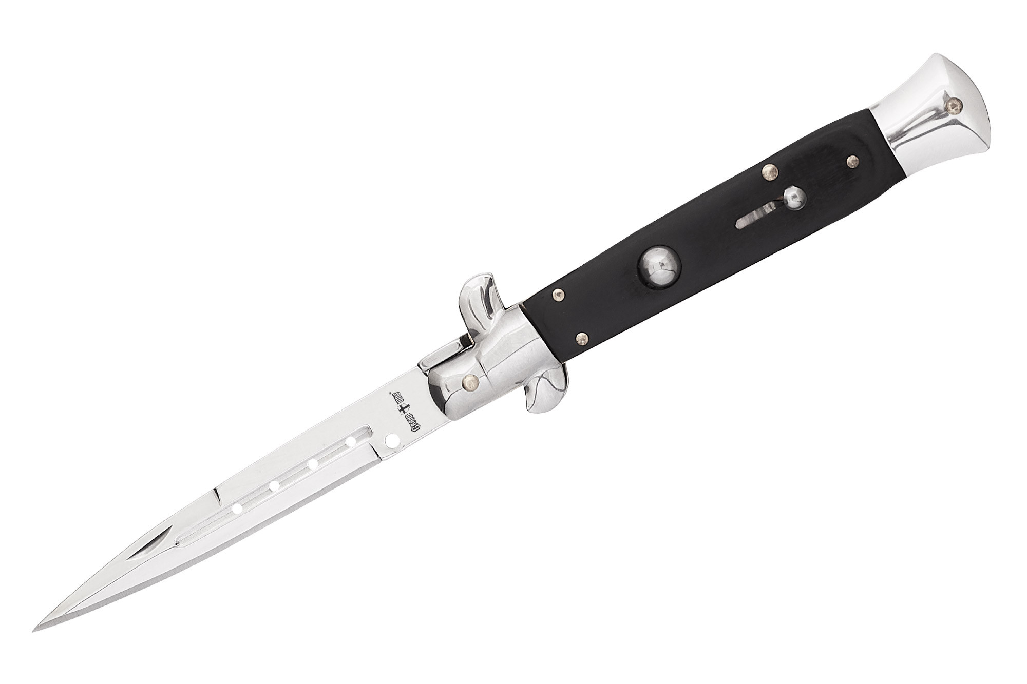 Выкидной нож 170201-23 является довольно точной репликой итальянского автоматического стилета. Этот тип ножей хорошо известен по всему миру (во многом благодаря кинематографу). Так что данная модель «выкидушки» подойдёт не только тем, кто желает просто приобрести лёгкий и удобный складень, но и коллекционерам.