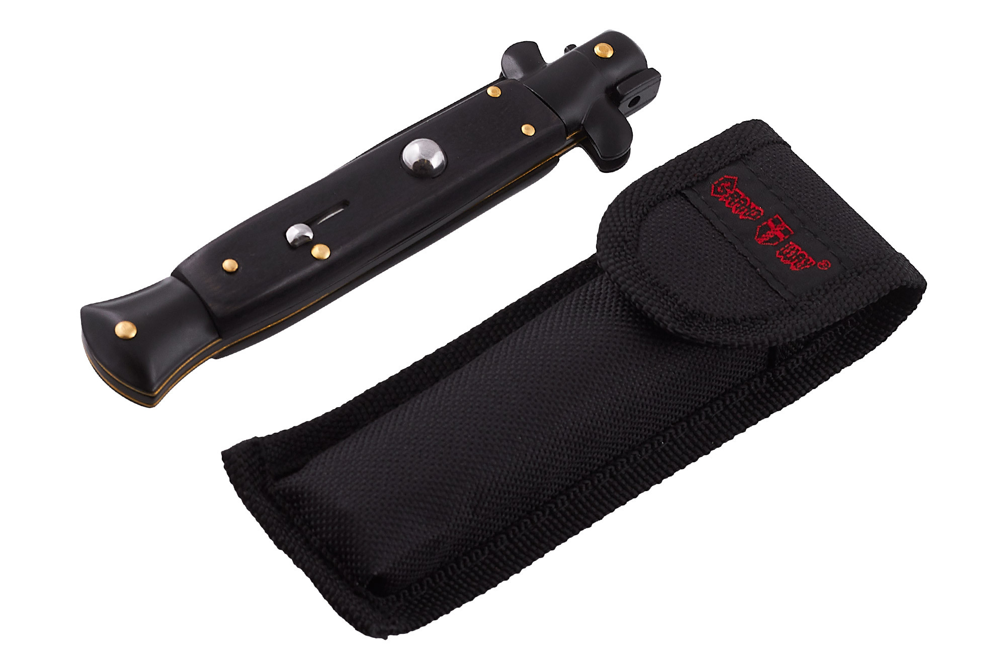 Выкидной нож 170201-31 является довольно точной репликой итальянского автоматического стилета. Этот тип ножей хорошо известен по всему миру (во многом благодаря кинематографу). Так что данная модель «выкидушки» подойдёт не только тем, кто желает просто приобрести лёгкий и удобный складень, но и коллекционерам.