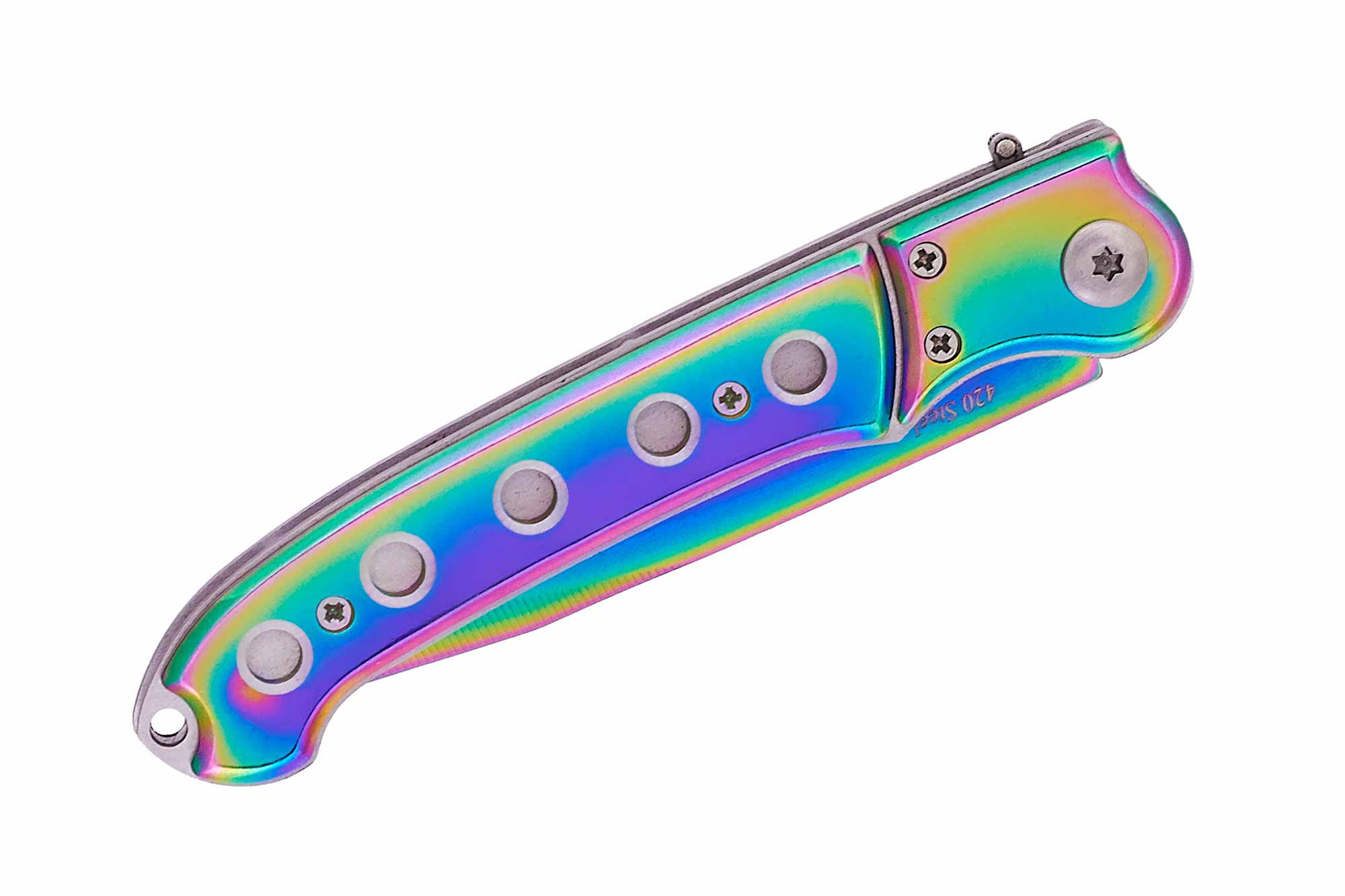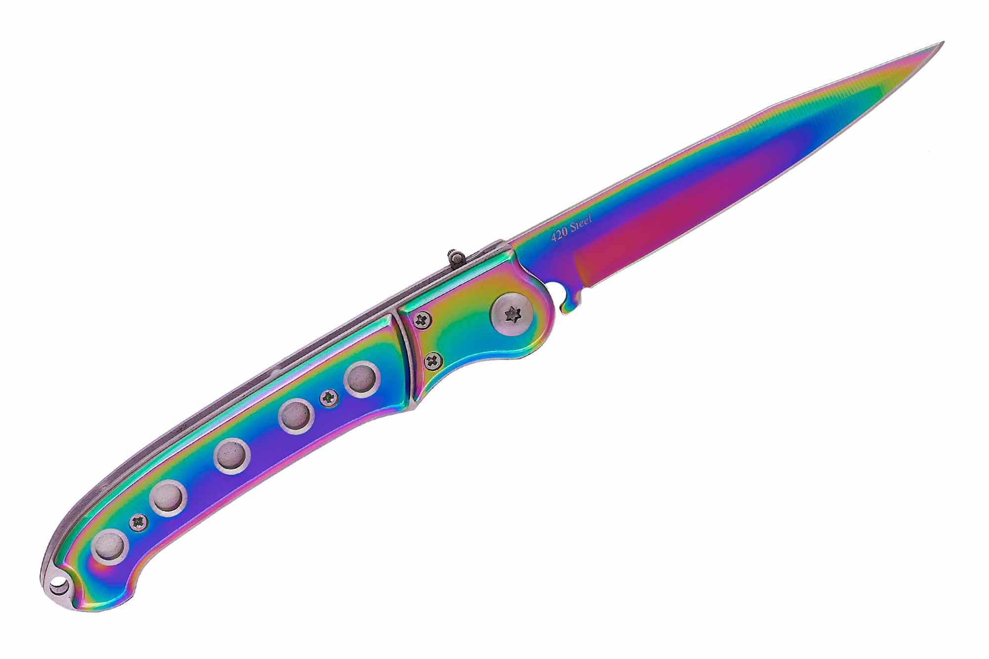 Надо отметить, что помимо эстетических, с практическими качествами у этого ножа тоже всё в порядке. Нож довольно прочно собран. Его клинок изготовлен из стойкой к коррозии нержавеющей стали марки 420 и хорошо подойдёт, как для прокалывания, так и для реза.
