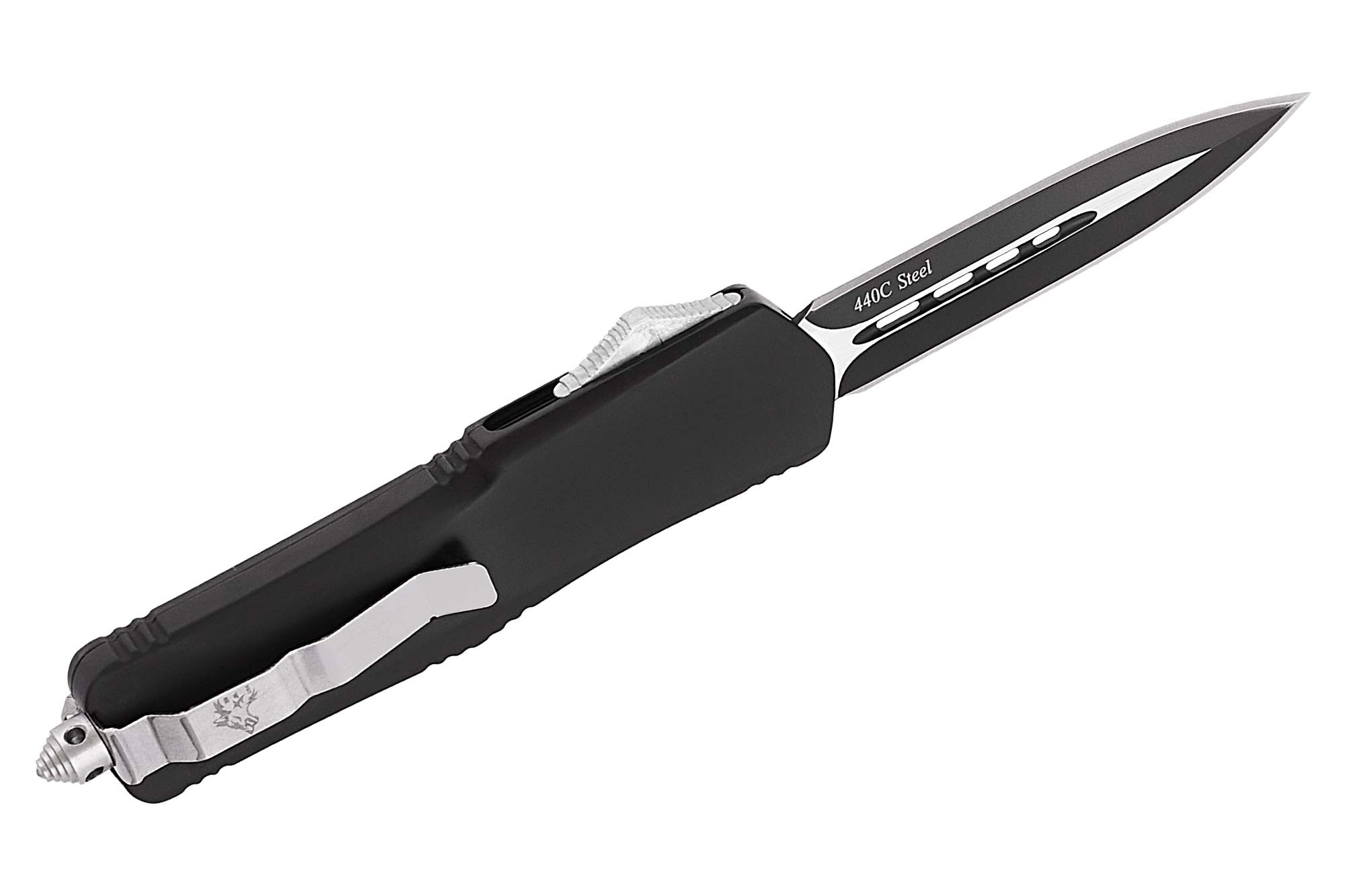 Клинок – обоюдоострый spearpoint с агрессивным технодизайном, типичным для современных фронталок. Длина клинка – 88 мм, толщина 2,6 мм. Материал – нержавеющая сталь 440С, известная своей прочностью и отличной сопротивляемостью коррозии.