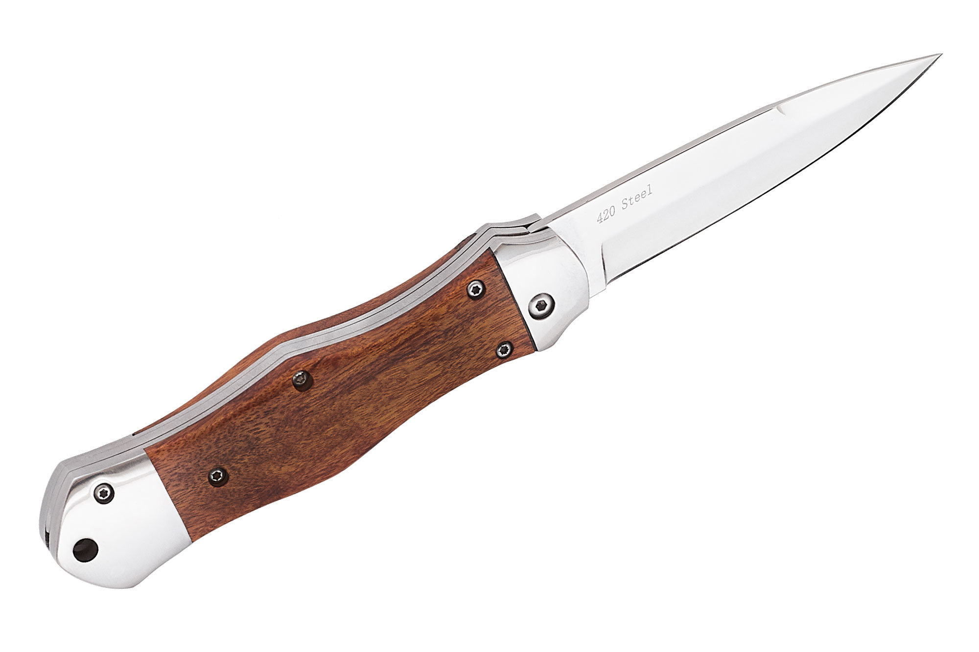 Сталь клинка - нержавейка марки 420 отлично сопротивляется коррозии и без проблем затачивается до вполне приличной остроты.