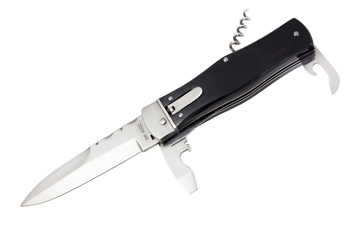 Выкидной нож 8042 HPS – это не просто красивый автоматический фолдер, но и настоящий джентльменский мультитул. Благодаря таким дополнительным элементам, как штопор и открывалки, 8042 HPS является многофункциональным ножом, который придет вам на помощь на вечеринке, в поездках и на пикниках.