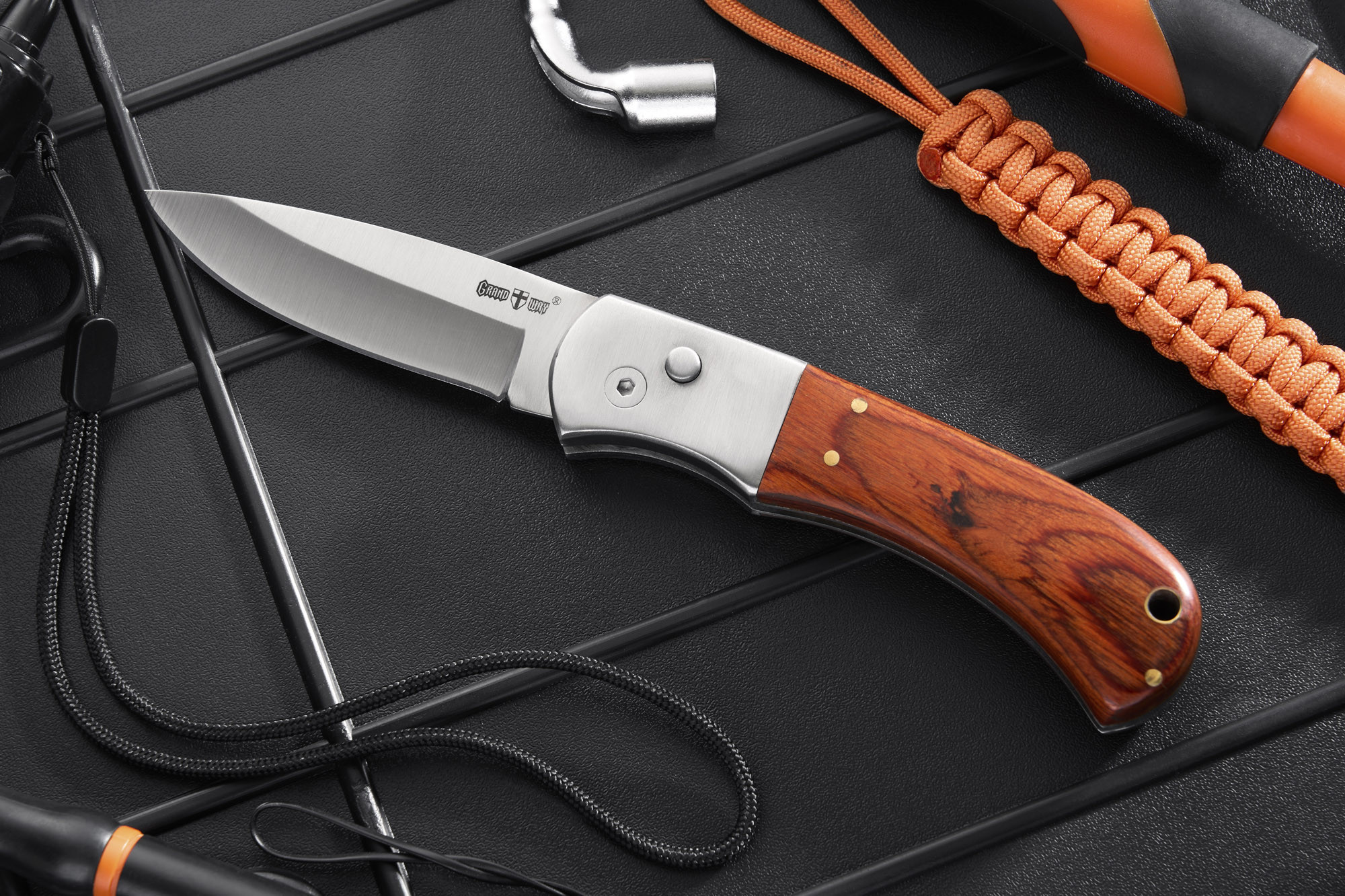 - Простий і надійний механізм швидко розкриває складаний ніж. Достатньо лише натиснути кнопку.