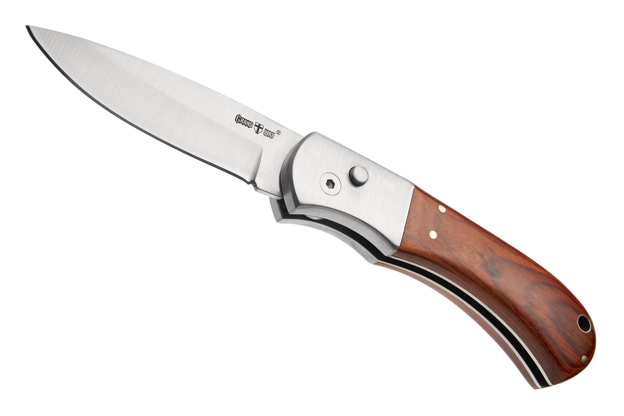 Руків'я ножа Grand Way 9008 K побудоване з міцних лайнерів з нержавіючої сталі вкритих декоративними накладками з якісної полірованої деревини. Класичний ніж з дерев'яними накладками руків'я дуже приємно тримати в руці. Руків'я не примерзає до долоней на морозі та не розжарюється на сонці.