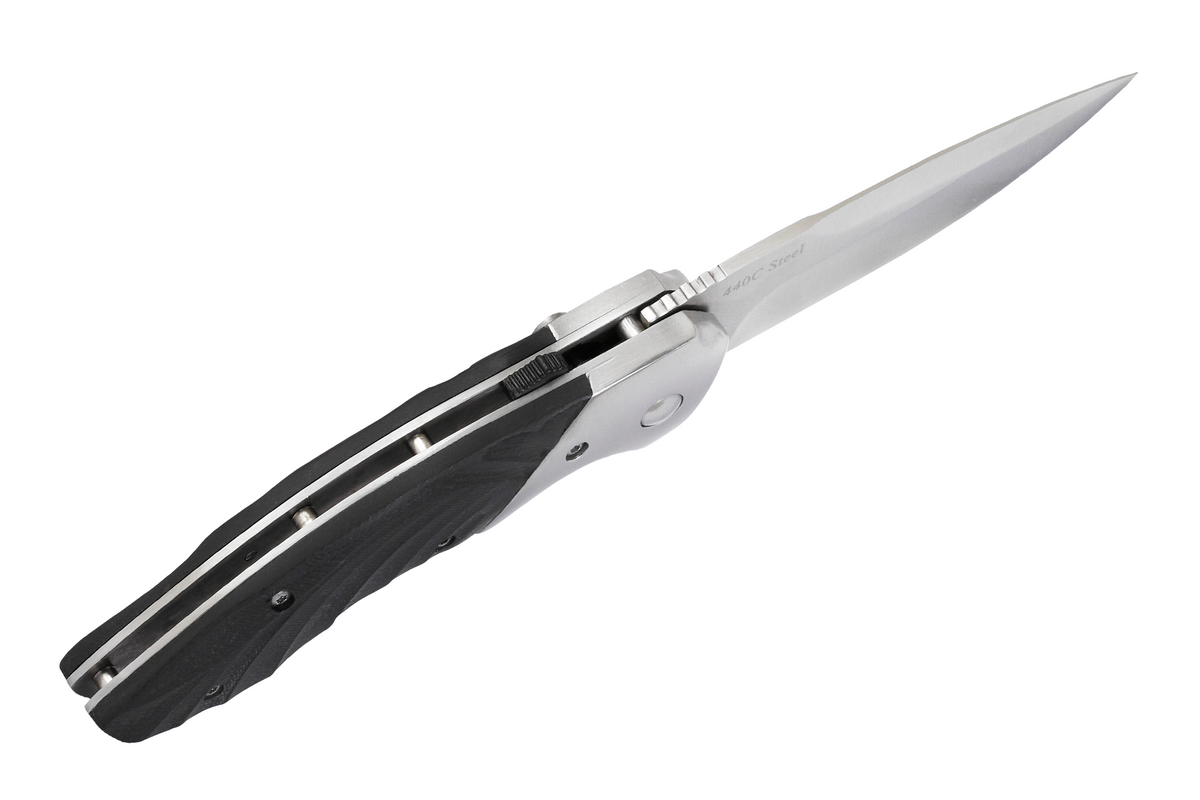 Модель 9103 получила клинок типа Spear Point c развитым фальшлезвием. Клинки такого типа отличаются особыми « успехами» в проникающих ударах. Режущая кромка ножа образована слабовогнутыми спусками от середины клинка. Сталь 440С, используемая на клинке - золотая середина по сочетанию своих потребительских и стоимостных показателей. Сталь достаточная твердая, способная довольно долго сохранять остроту режущей кромки, а, следовательно, обходиться без заточки.