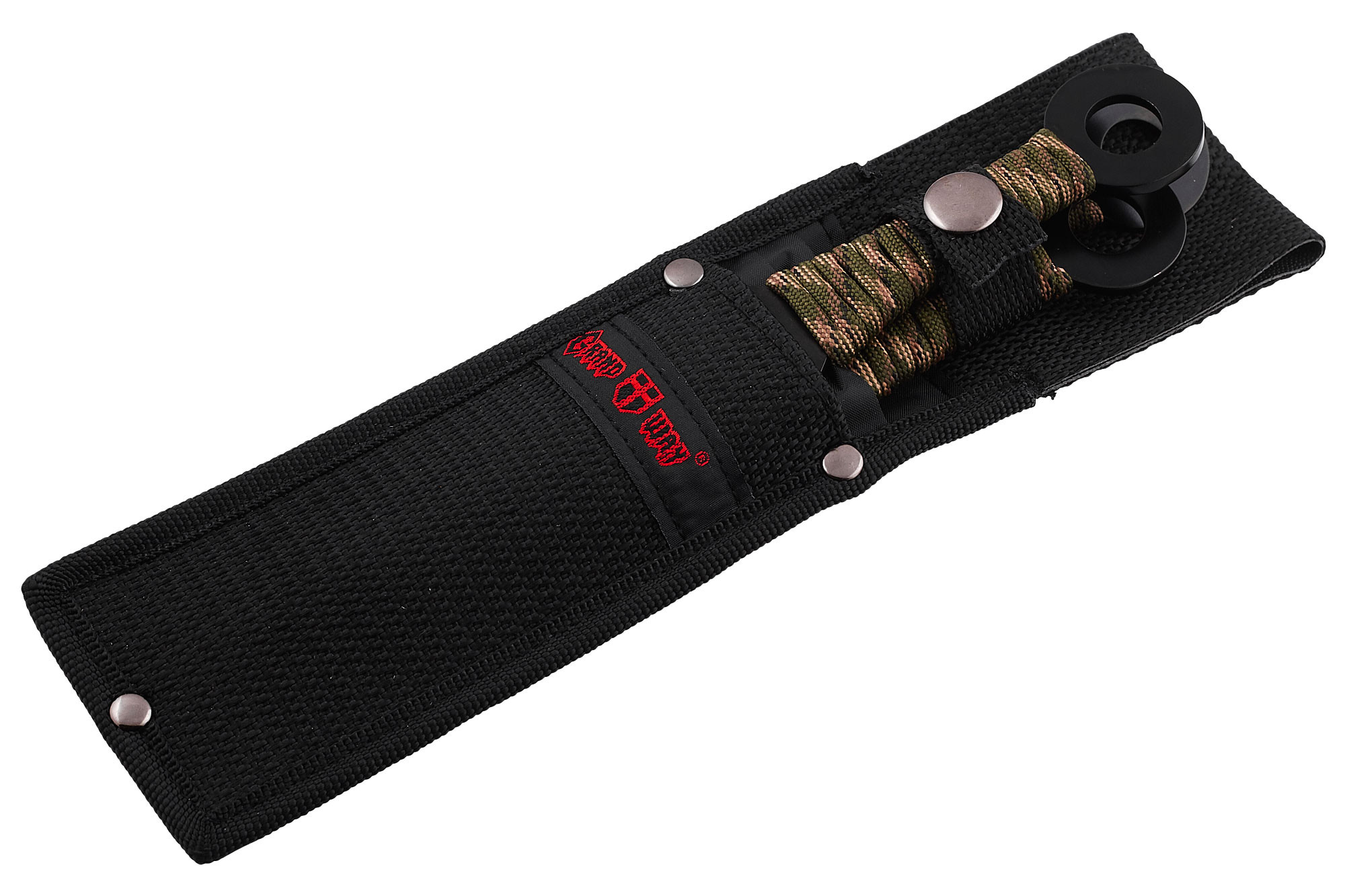 Сталь 420 отличается и повышенной коррозиестойкостью: влага ей не страшна. Набор метательных ножей надежно и удобно фиксируется в специальном чехле из прочной кордуры.
