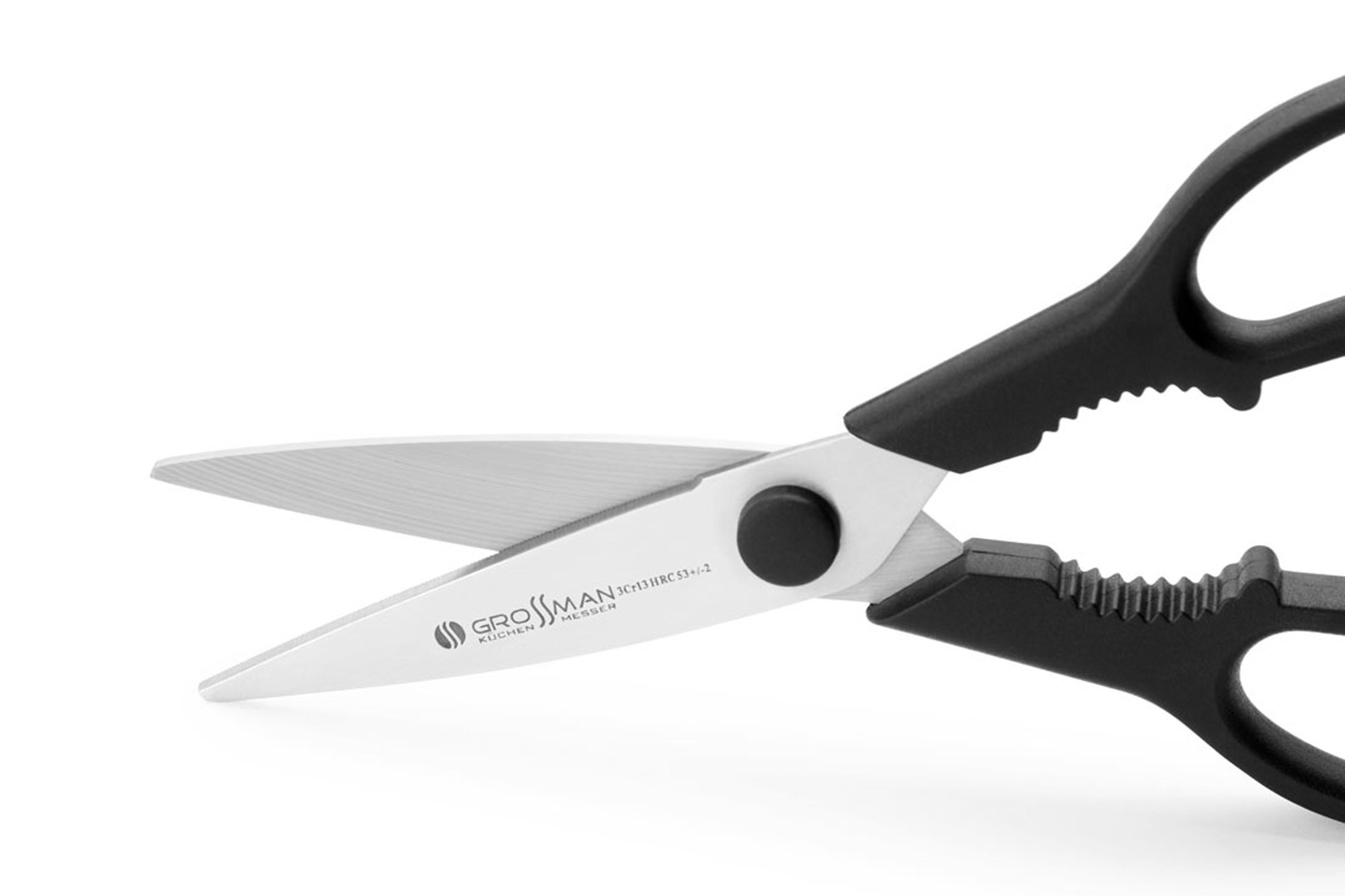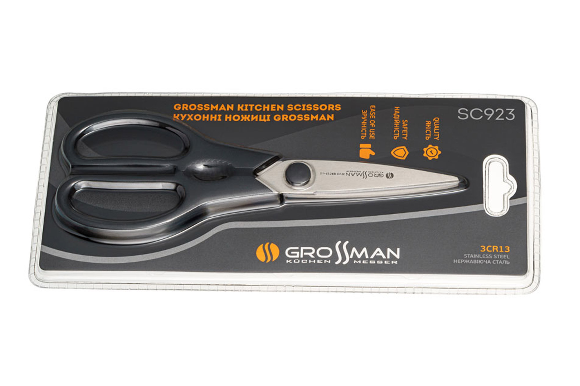 Эта нержавеющая сталь хорошо известна во всём мире. Главная причина этого – её высокая надёжность и доступная цена. Если вам нужны кухонные ножницы, которыми вы будете активно пользоваться каждый день и при этом не переплатить – купить кухонные ножницы GROSSMAN из нержавеющей стали 3Cr13, будет отличным выбором. Таким ножницам действительно можно доверять. Они пригодны к ежедневной эксплуатации на кухне. 3Cr13 – одна из лучших нержавеющих сталей в своей ценовой категории.