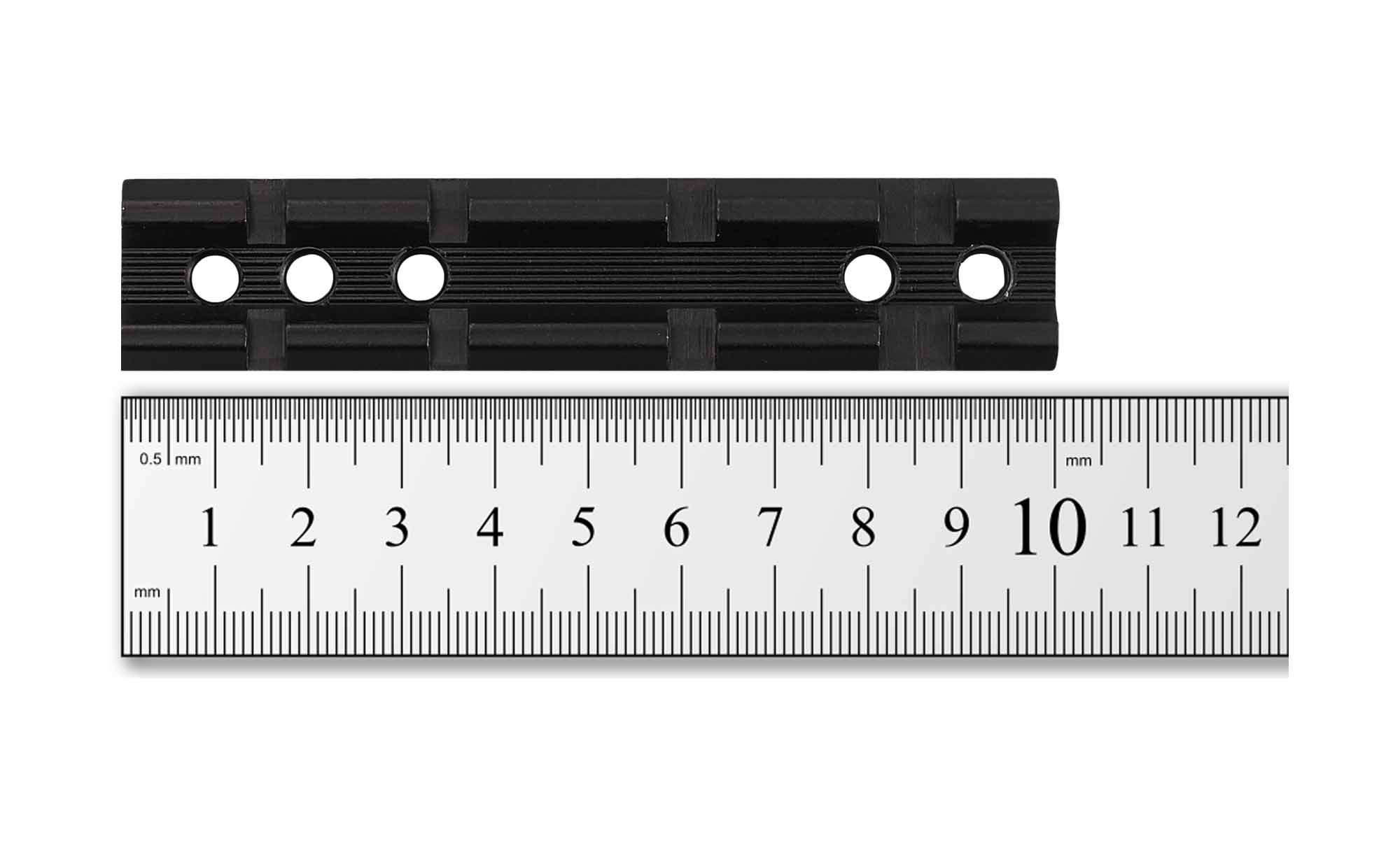 По сути, кронштейн представляет собой стальную вентилируемую рельсу с прорезями, с помощью которых можно зафиксировать устанавливаемое устройство в нужном положении при помощи болтов либо рычагов. Благодаря прорезям положение устройства можно гибко варьировать по желанию стрелка. Крепление получается надёжным, сама планка лёгкой. К тому же, обеспечивается охлаждение, благодаря чему кронштейн не меняет размеры и форму от перепадов температур.