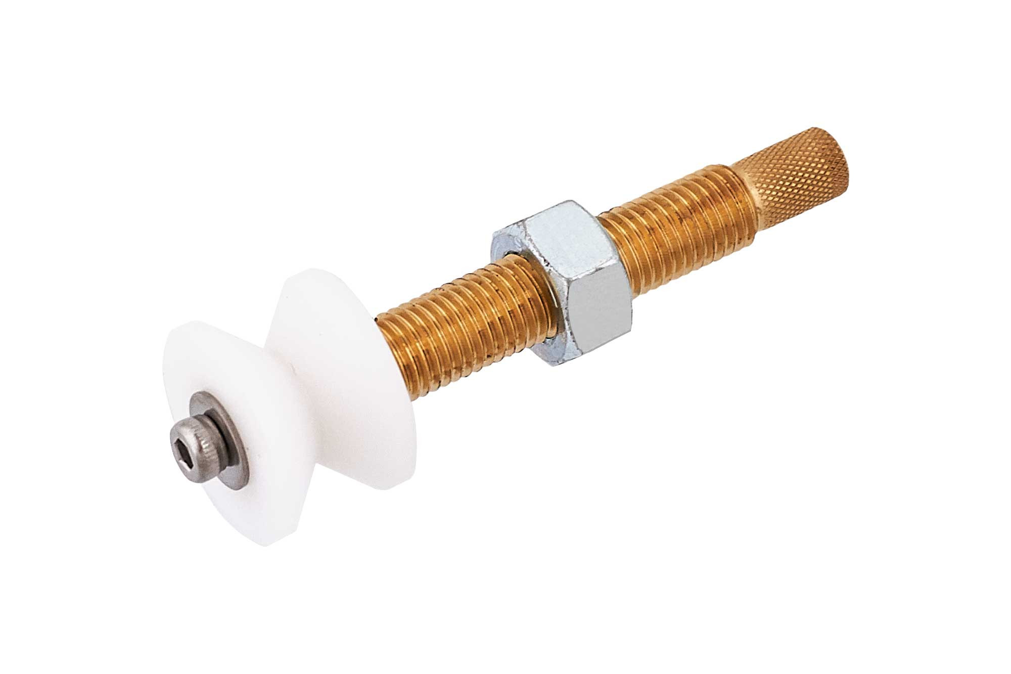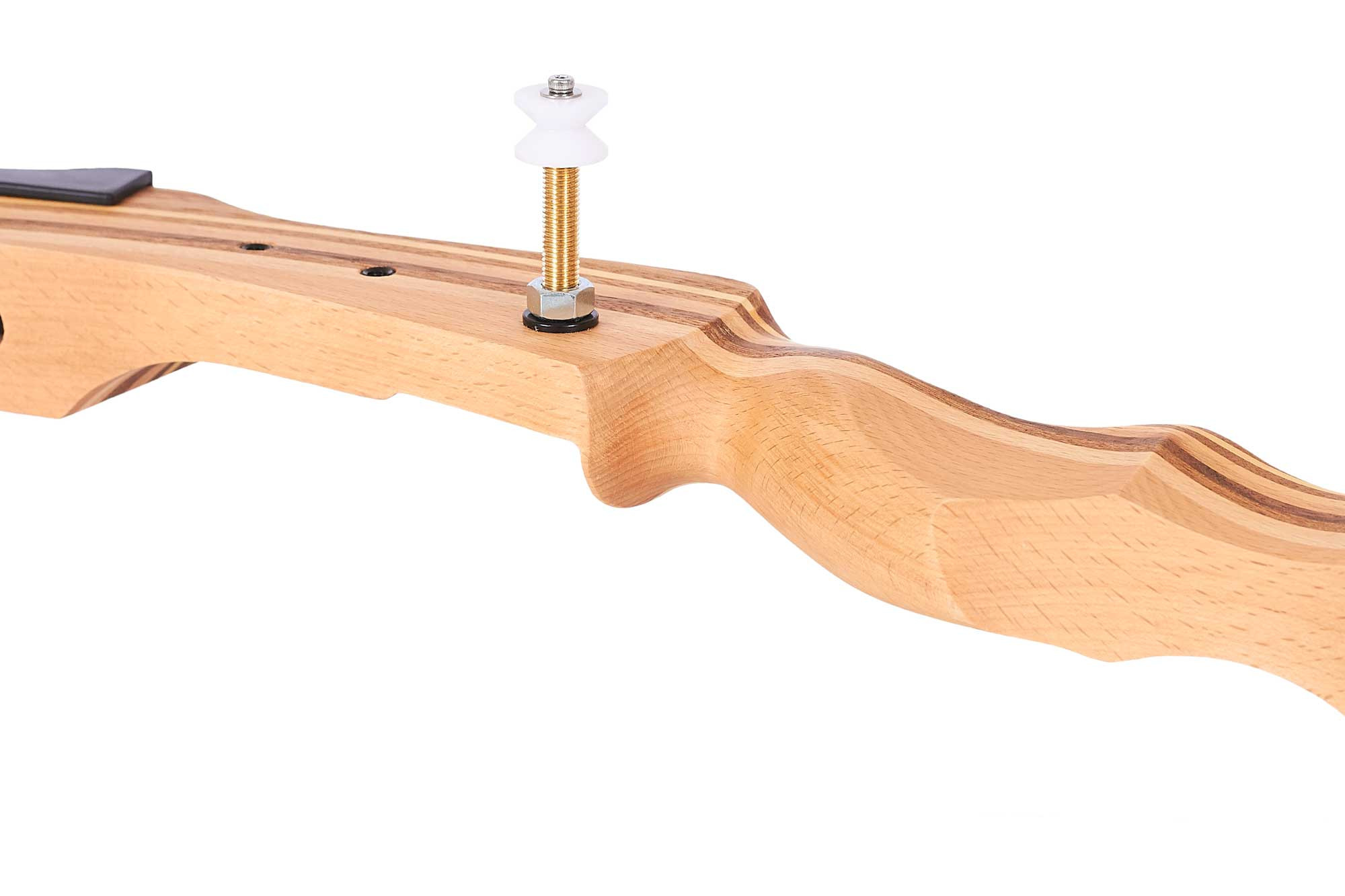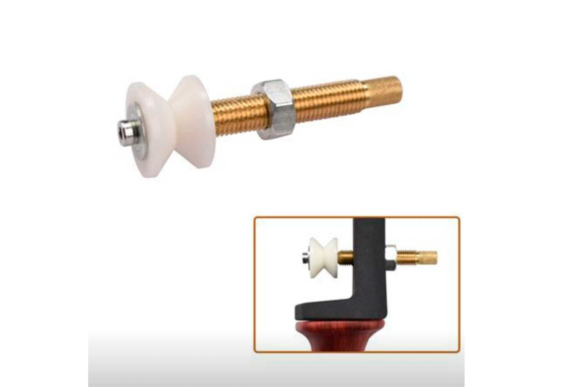 Простая конструкция включает в себя пластиковый ролик для гарпунной стрелы, установленный на латунной резьбовой шпильке.