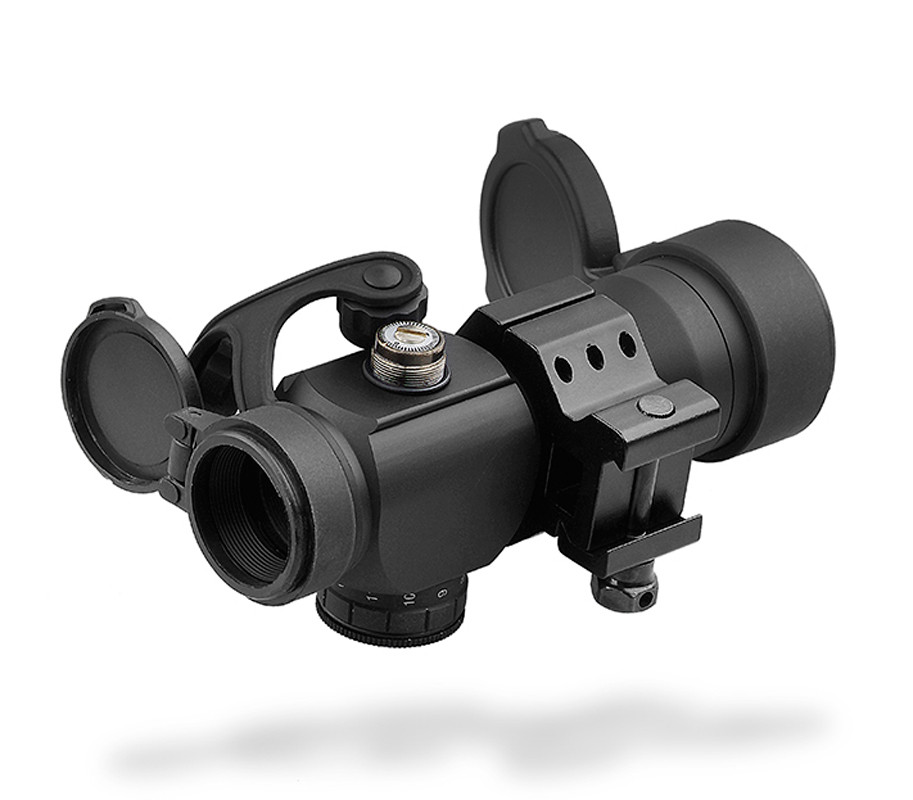 Коллиматорный прицел 1x30 RD от компании Discovery совместим со стандартом креплений Вивера. Идет с элементом питания и защитными крышками для объектива и окуляра в комплекте.