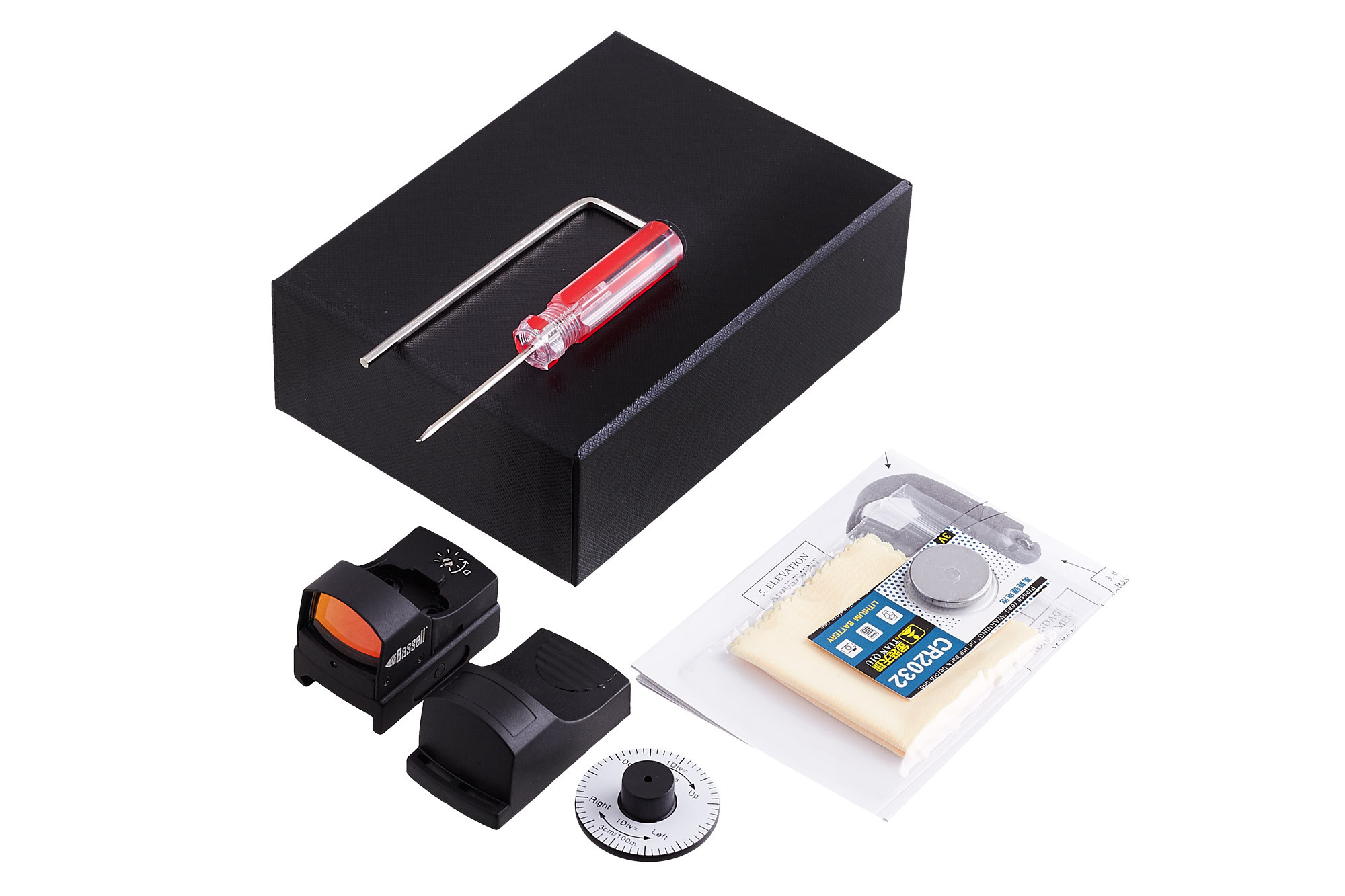 Питается коллиматорный прицел JH-600 BASSELL от батарейки CR2032, а встроенный светодатчик позволяет использовать ее заряд достаточно экономно.