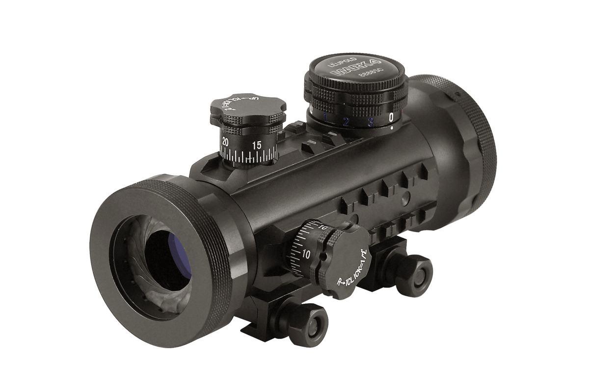 - Быстро прицелится по внезапно возникшей движущейся цели. Достаточно просто поймать взглядом цель и навести на неё яркую, хорошо заметную прицельную марку. При этом нет нужды тратить время на совмещение мушки и целика.