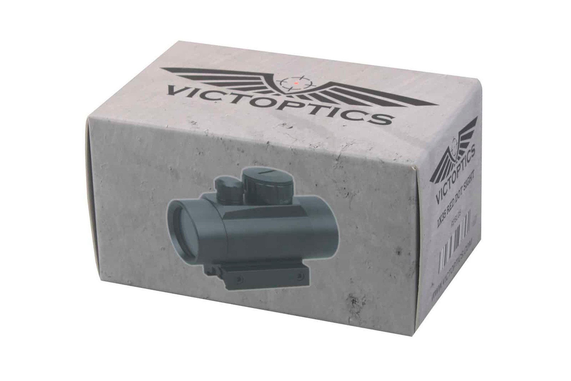 Корпус Victoptics 1x35 RD герметичен и заполнен азотом, что предохраняет прицел от воздействия влаги и запотевания. Материал корпуса – алюминиевый сплав. Конструкция в целом легка (вес всего 160 г) и при этом прочна, заявлена производителем, как противоударная.