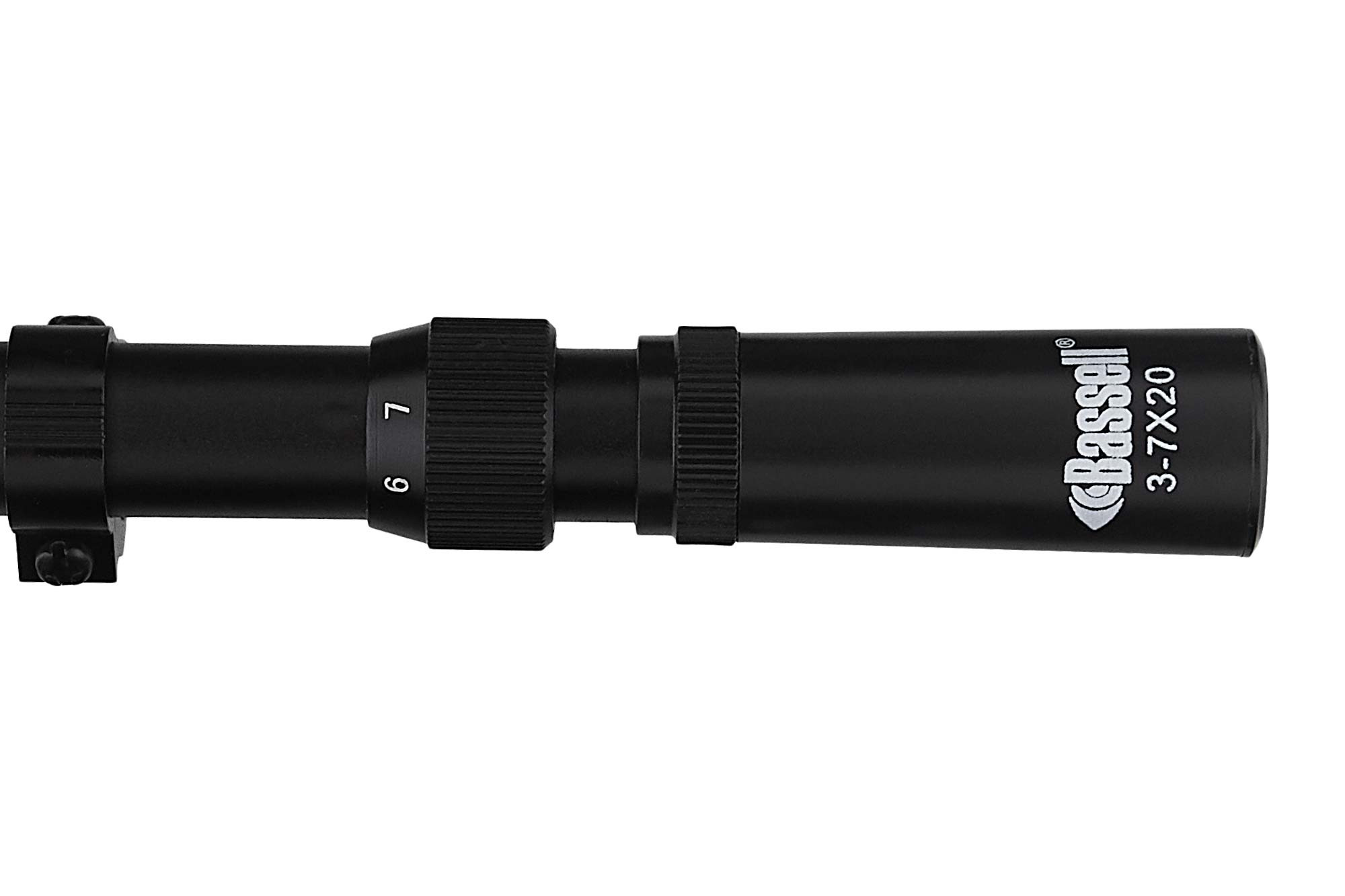 3-7x20 - BASSELL – бюджетный оптический прицел изменяемой кратности. Он совместим с пневматикой CO2 и РСР, огнестрельное оружие со скоростью пули до 350м/с, арбалеты. Простота и доступность этого прицела, делает его удачным выбором для начинающих стрелков.