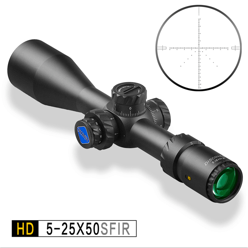 Серия HD, к которой относится модель Discovery HD/30 5-25x50 SFIR включает в себя прицелы, способные выдерживать отдачу огнестрельного оружия калибром вплоть до 50 BMG.