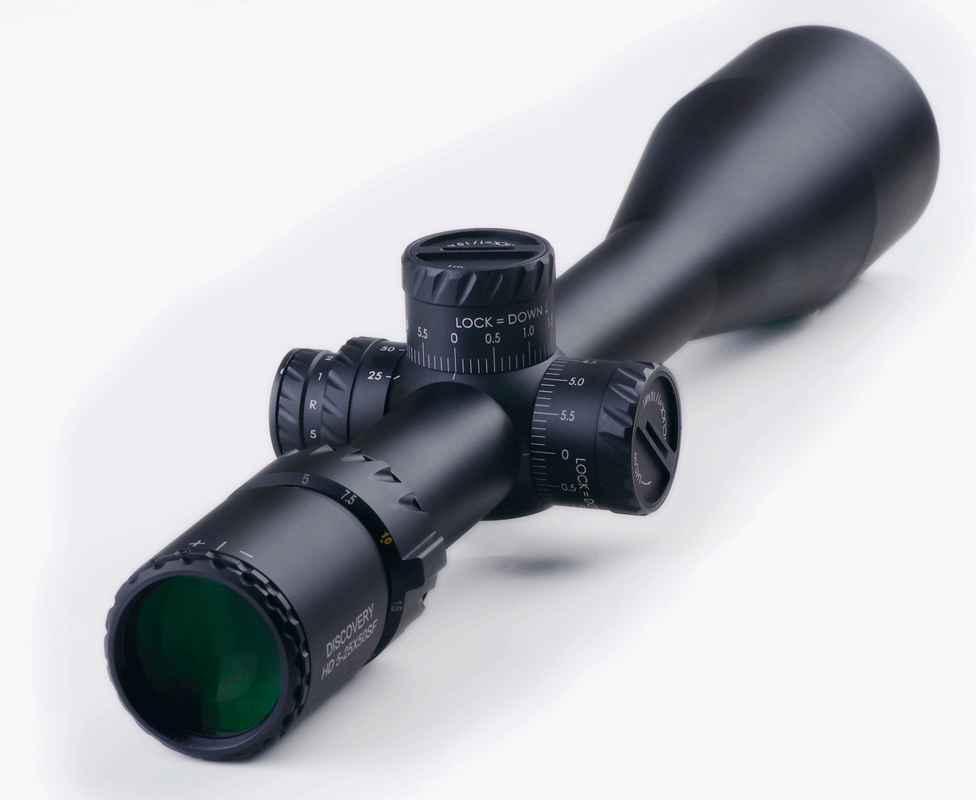 Прицел Discovery Optics HD5-25x50 SFIR FFP укомплектован солнцезащитной блендой и защитными заглушками на объектив и окуляр