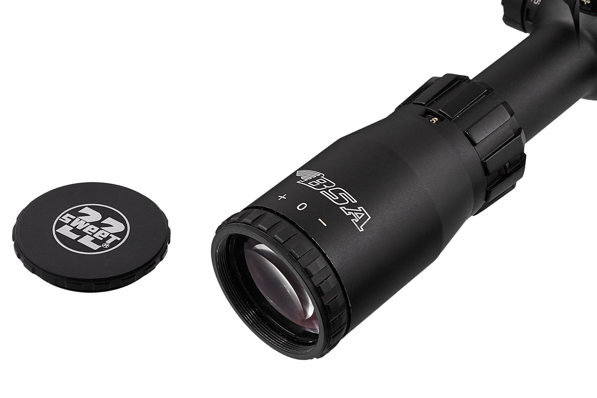 BSA-Optics Sweet 22 6-18x40SP – прекрасный оптический прицел, который был специально разработан для оружия под патрон .22 LR. Патрон 22-го калибра (5,6 мм) является широко распространенным видом боеприпаса для тренировочной и спортивной стрельбы, а также охоты на мелкого пушного зверя и грызуна. Таким образом и популярность BSA-Optics Sweet 22 6-18x40SP обеспечена.
