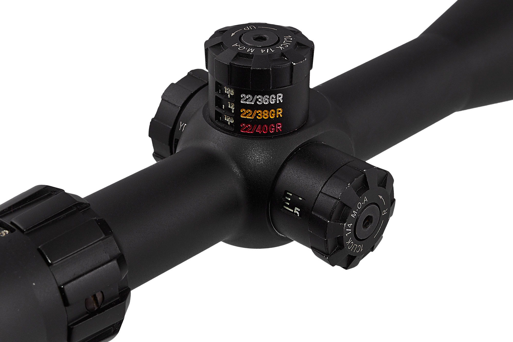 Главная особенность прицела – система маховика с разметкой под наиболее распространенные весовые характеристик пуль. Шкал несколько, под разные пули. Имеется три шкалы под наиболее распространенные пули весом 36, 38 и 40 гран. Стрелку следует выставить соответствующий вес пули, расстояние и произвести прицельный выстрел.