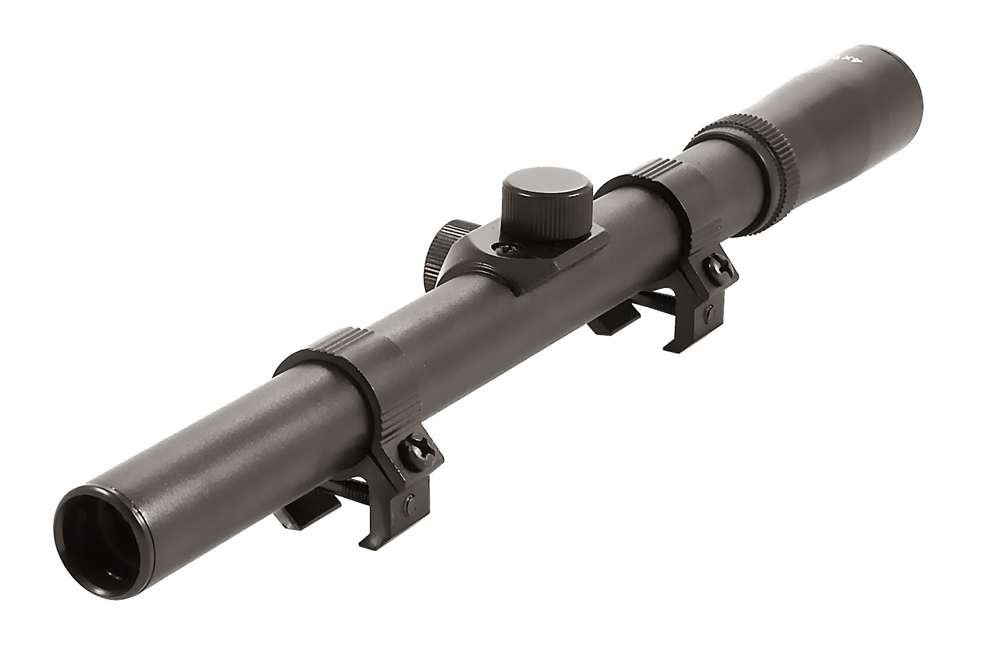 Как указано в маркировке, прицел имеет постоянное четырёхкратное увеличение и объектив диаметром 15 мм.
