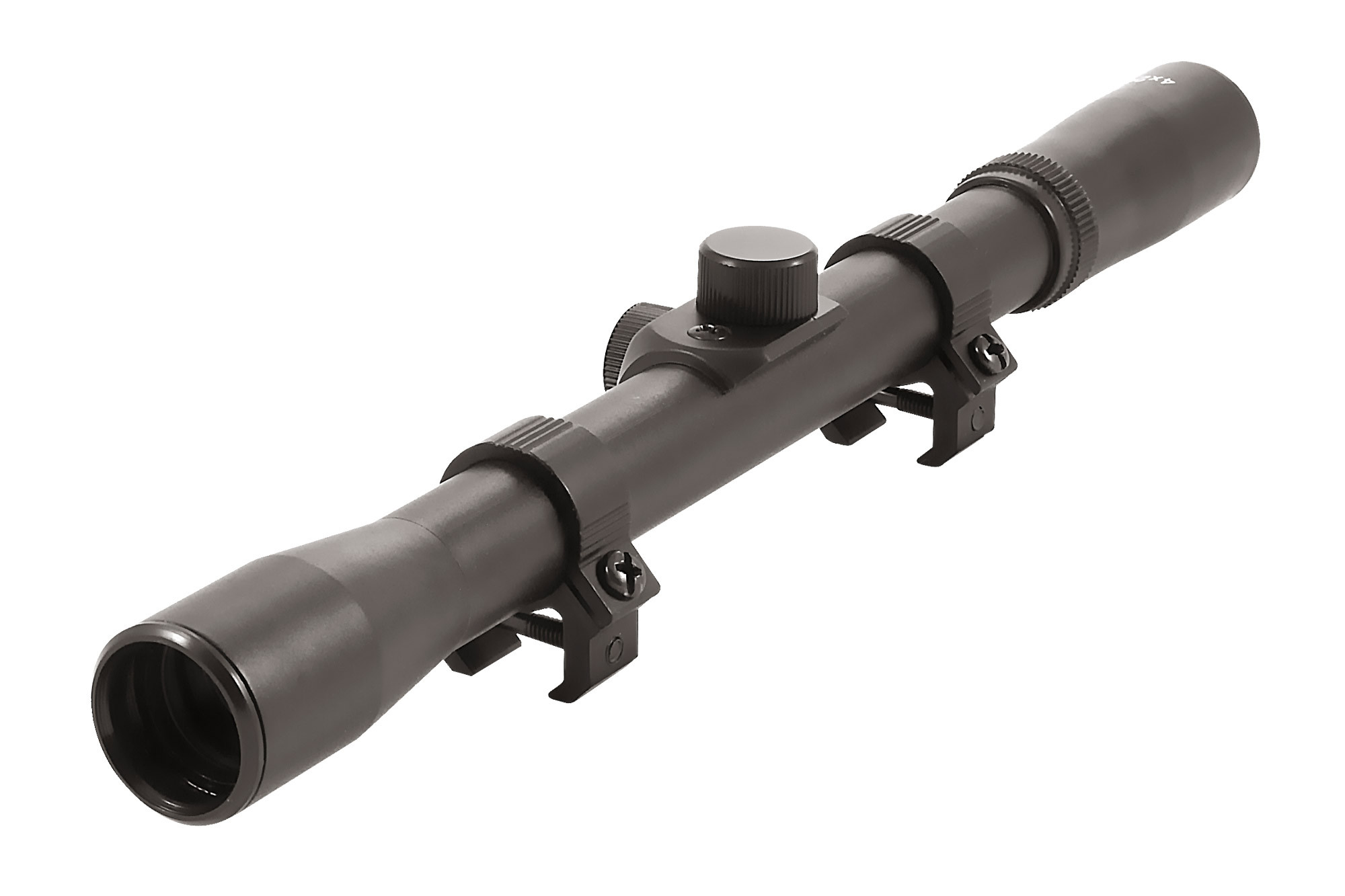 Как указано в маркировке, прицел имеет постоянное четырёхкратное увеличение и объектив диаметром 20 мм.