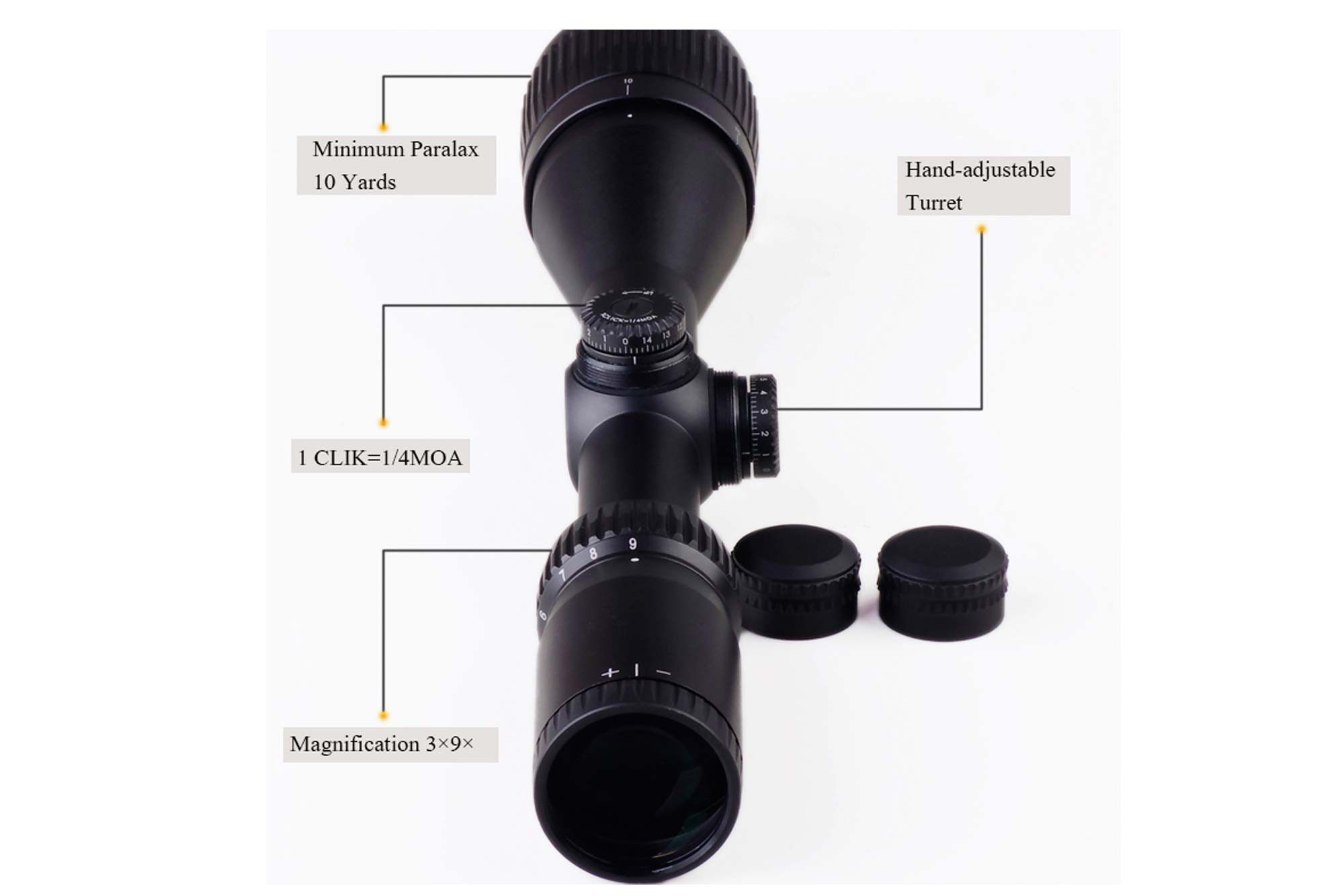 Для точной стрельбы на большие расстояния отстройка от параллакса просто необходима. Настроечное кольцо в данной модели расположено на объективе.