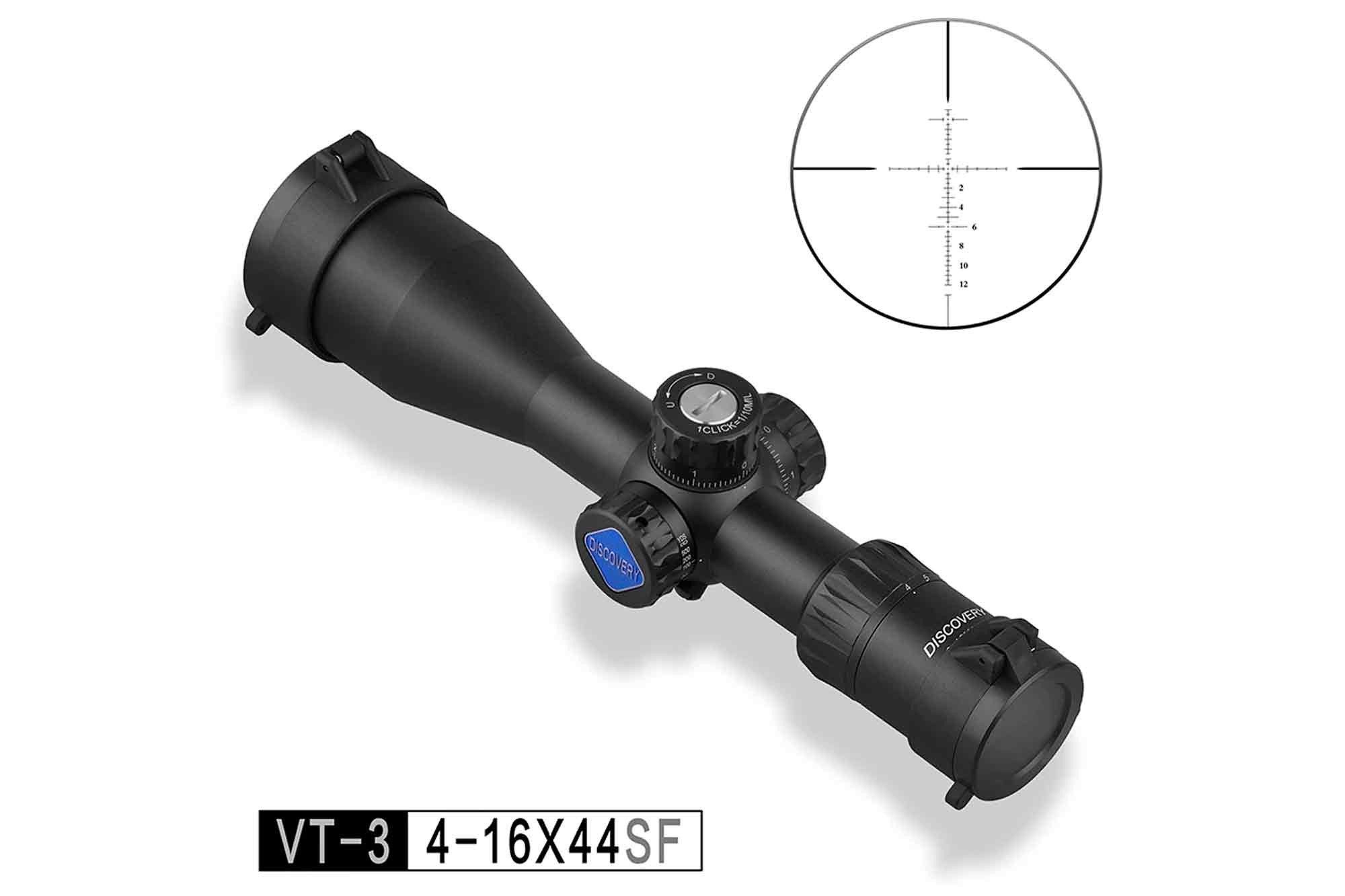 Discovery Optics VT-3 4-16x44 SF SFP – надёжный и качественный современный оптический прицел, позволяющий лёгкую настройку и комфортную эксплуатацию как в полевых условиях на охоте, так и в процессе различных спортивных стрелковых дисциплин.