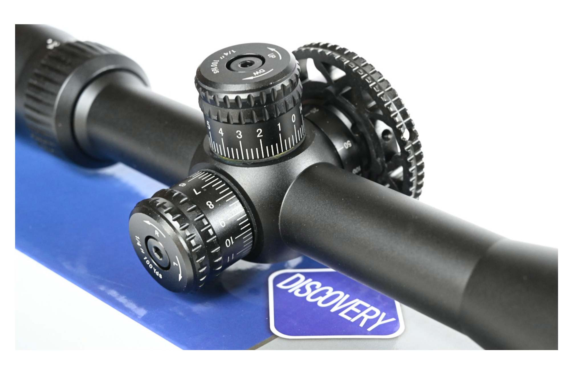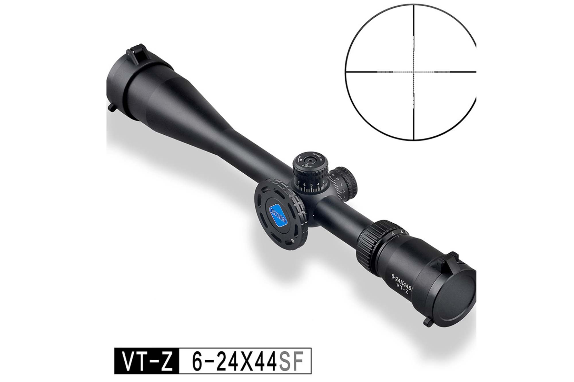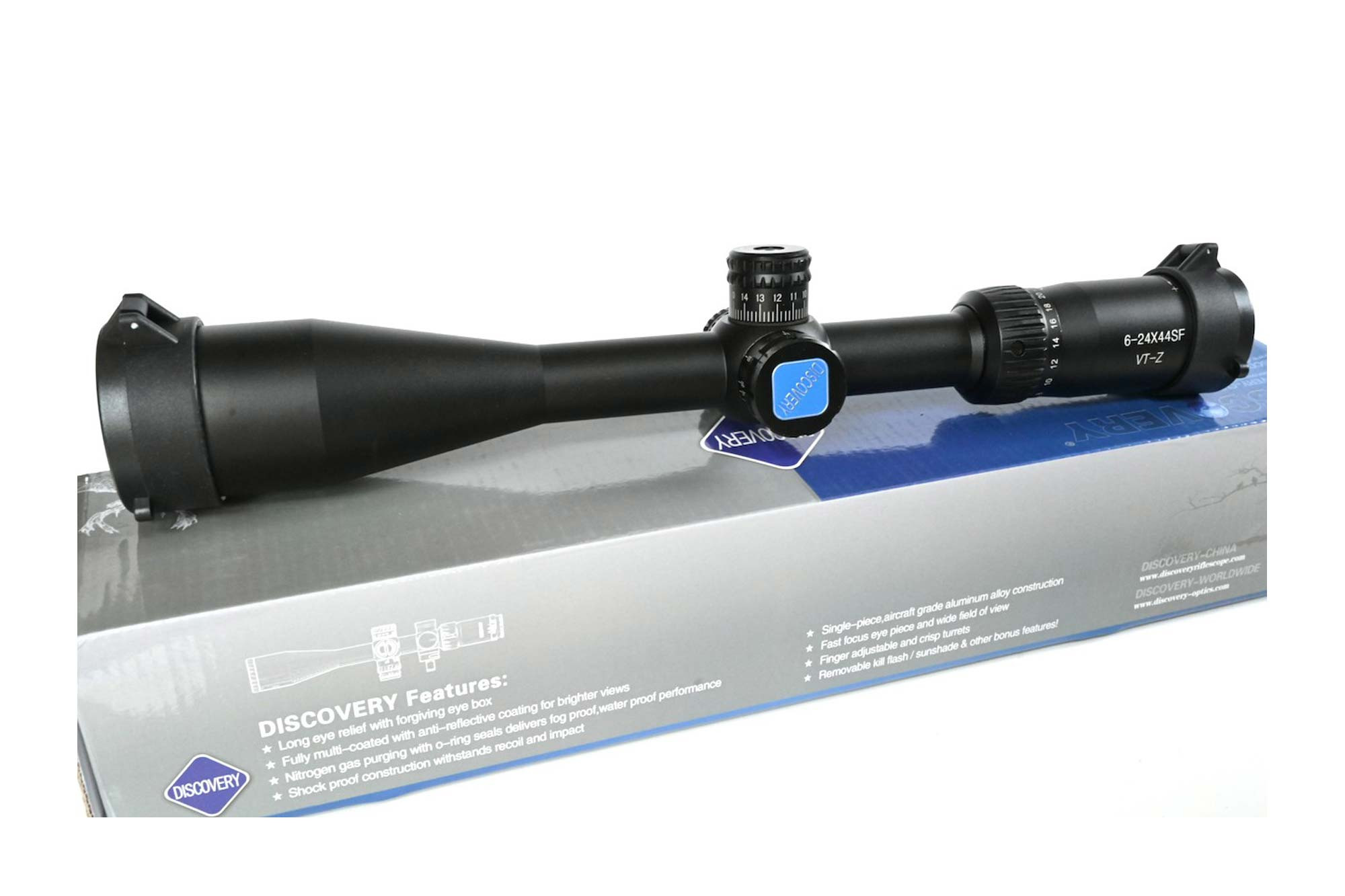 Discovery Optics VT-Z 6-24X44 SF – высококачественный прицел, обладающий изменяемым увеличением от 6х до 24х. Настройка увеличения производится с помощью кольца на объективе. Отстройка параллакса производится с помощью колеса расположенного на левой стороне прицела (SF в названии прицела означает «Side Focus» – «боковая настройка»). Прицел комплектуется большим колесом (улиткой), что делает его удобным для спортивной целевой стрельбы на большие расстояния.