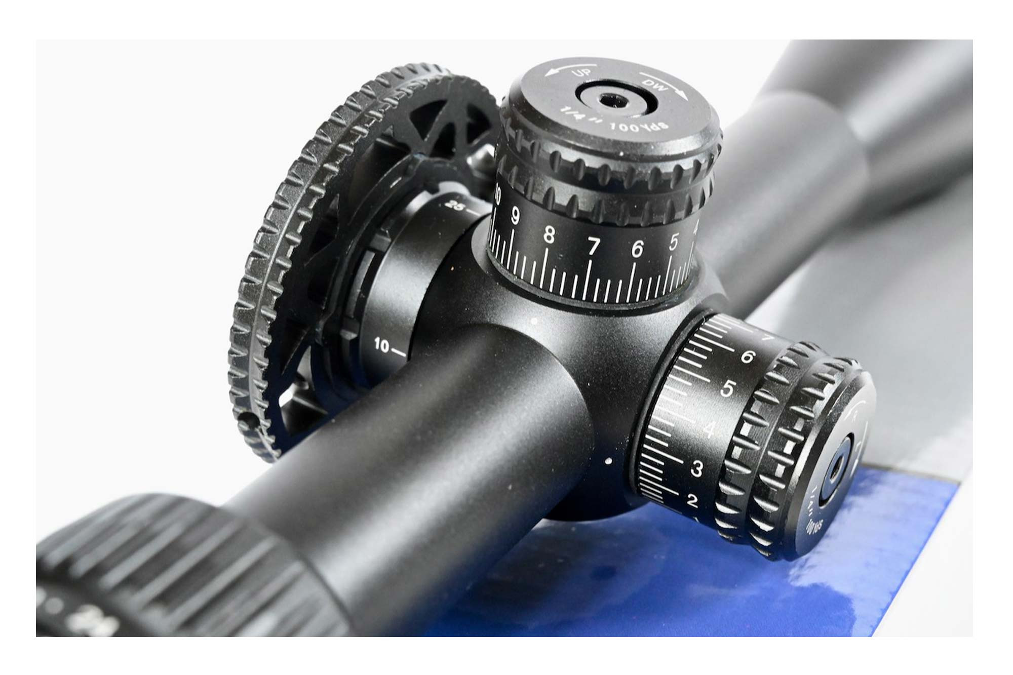 Поправки вносятся при помощи пары барабанчиков с ценой поправки 1/4 MOA и запасом по высоте и горизонту составляющей 55 MOA. Барабанчики тактические, то есть поправки можно вносить прямо на огневом рубеже. При этом можно не беспокоиться, что установленные настройки собьются, так как барабанчики выполнены фиксирующимися.