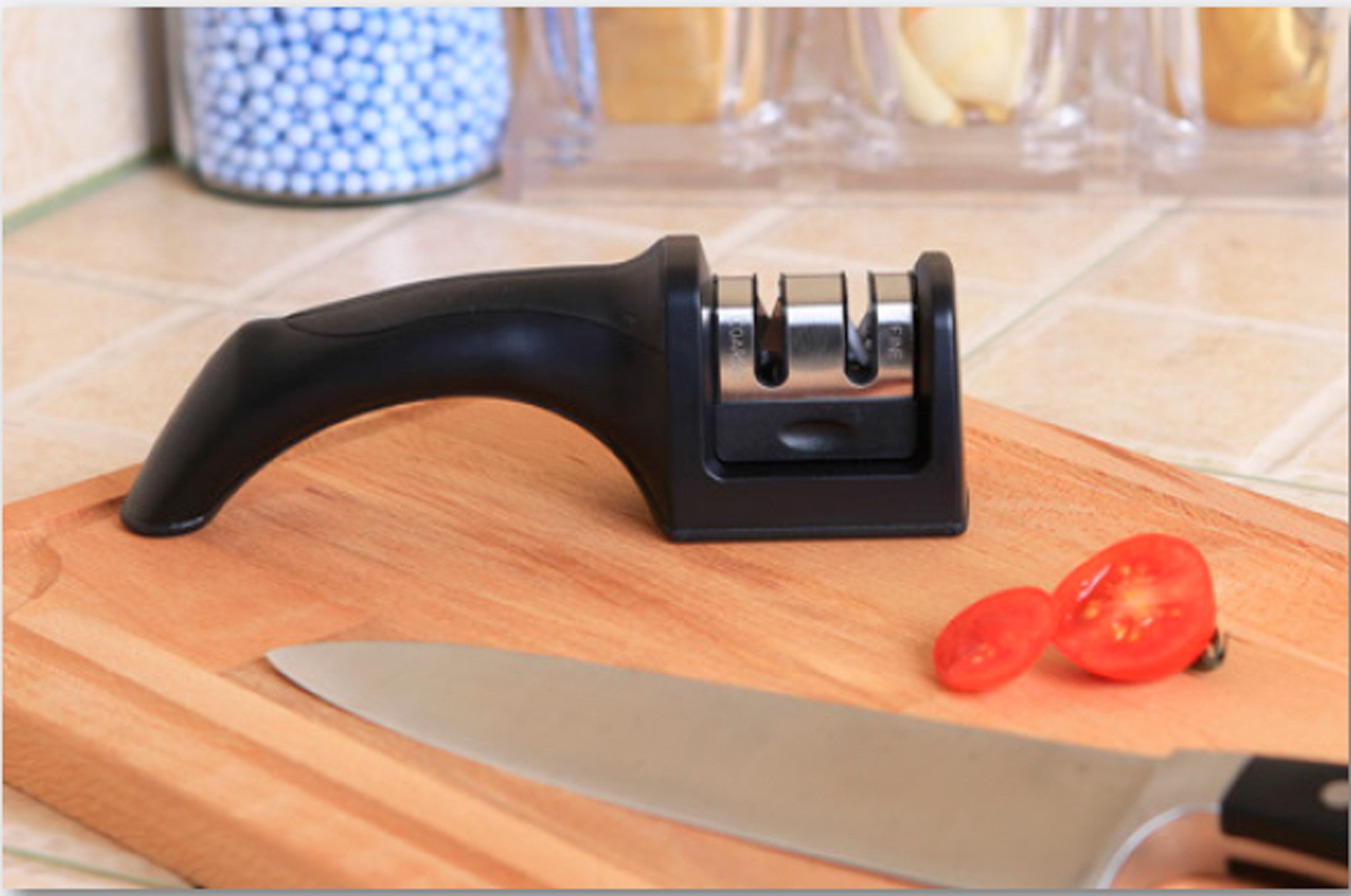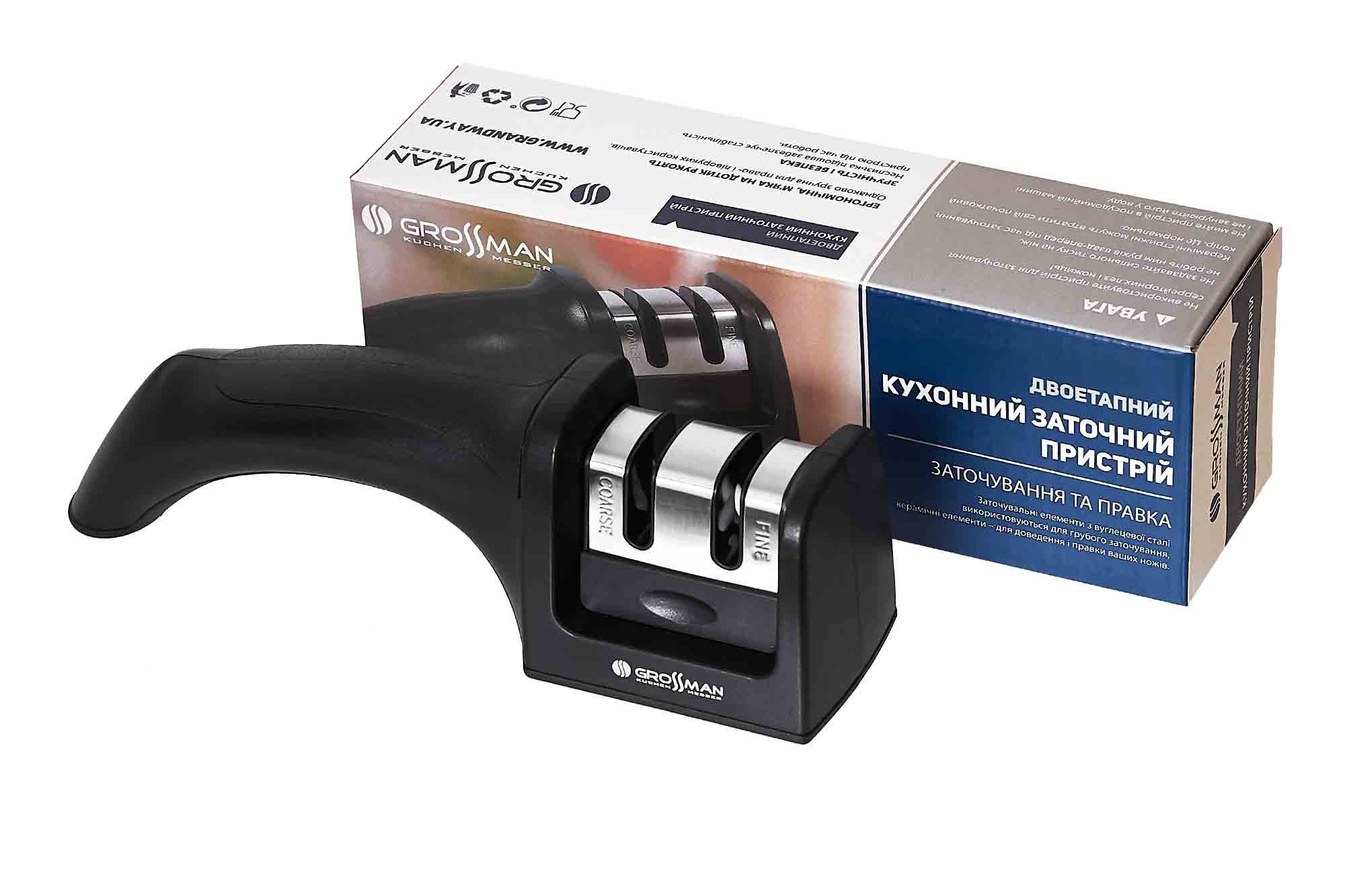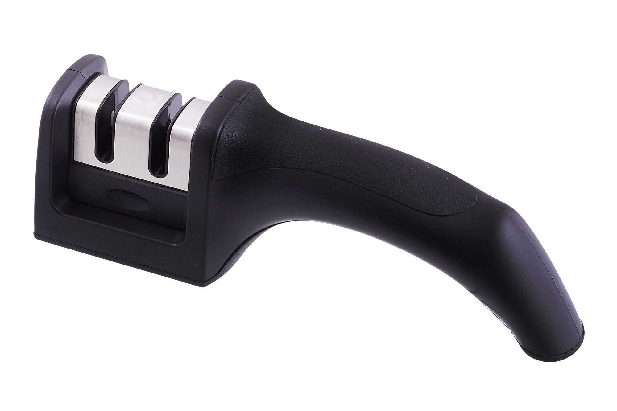 Конструкция точилки очень проста: она снабжена пазами с точильными абразивами – керамическим и из твердосплавной стали. Что делает точилку приспособленной для работы с ножами по-разному острыми или тупыми.