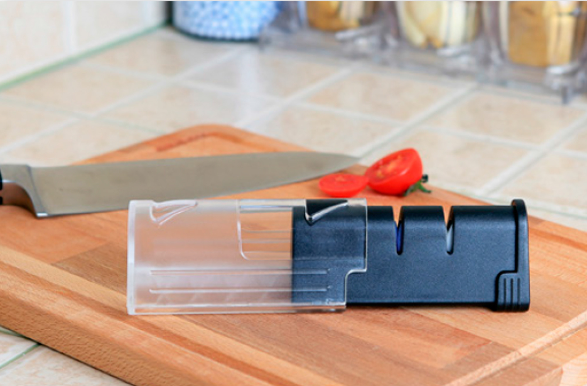 - оснащена двумя слотами для заточки. Для грубых и ремонтных работ. И для финишной обработки ваших кухонных ножей.