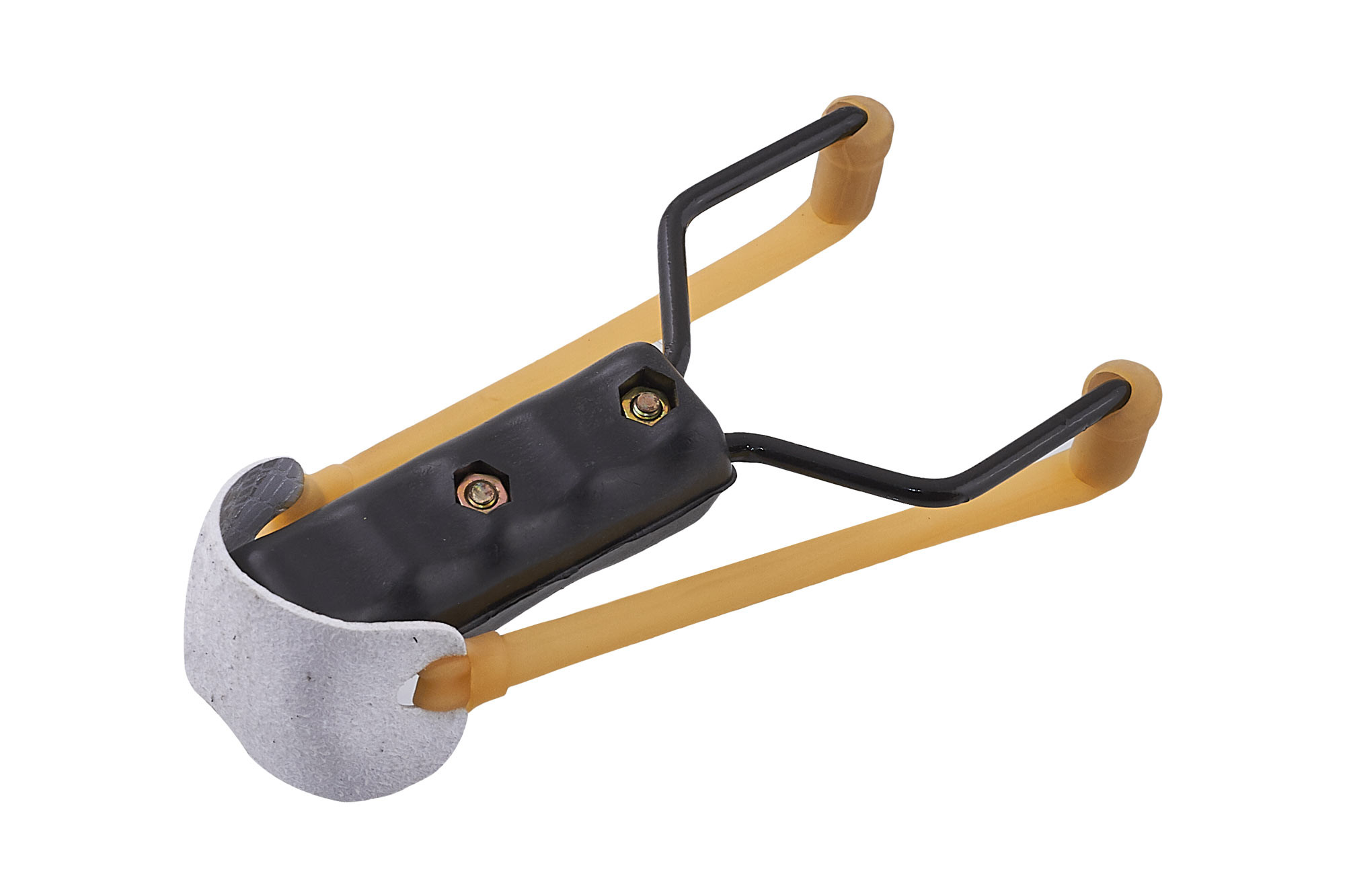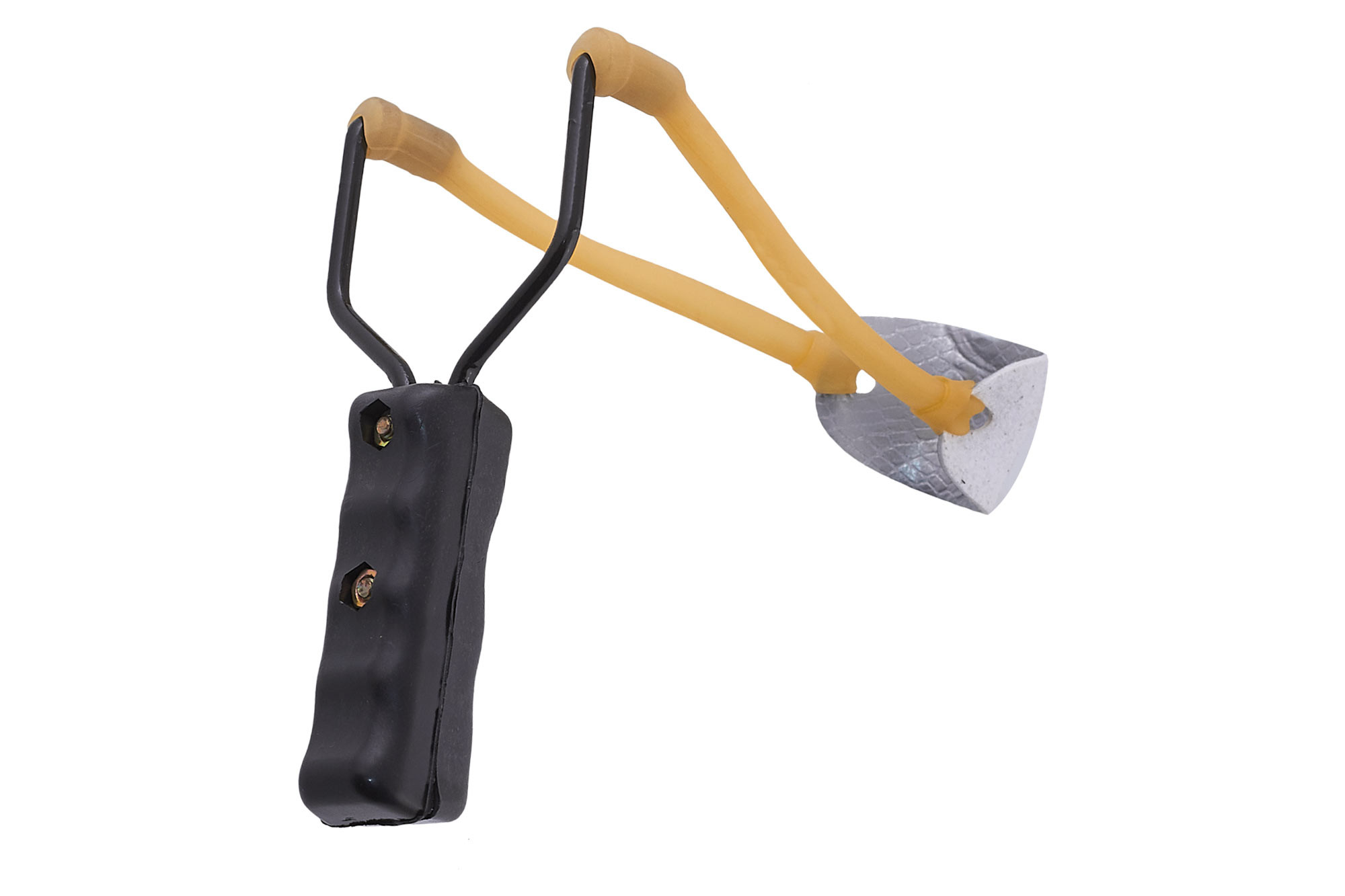 Эта лёгкая (всего 53 грамма веса) и компактная (140 на 60 мм) рогатка отлично подойдёт, как для заброса прикорма на рыбалке, так и для развлечения. Натяжения её латексного жгута как раз хватит для решения подобных задач.