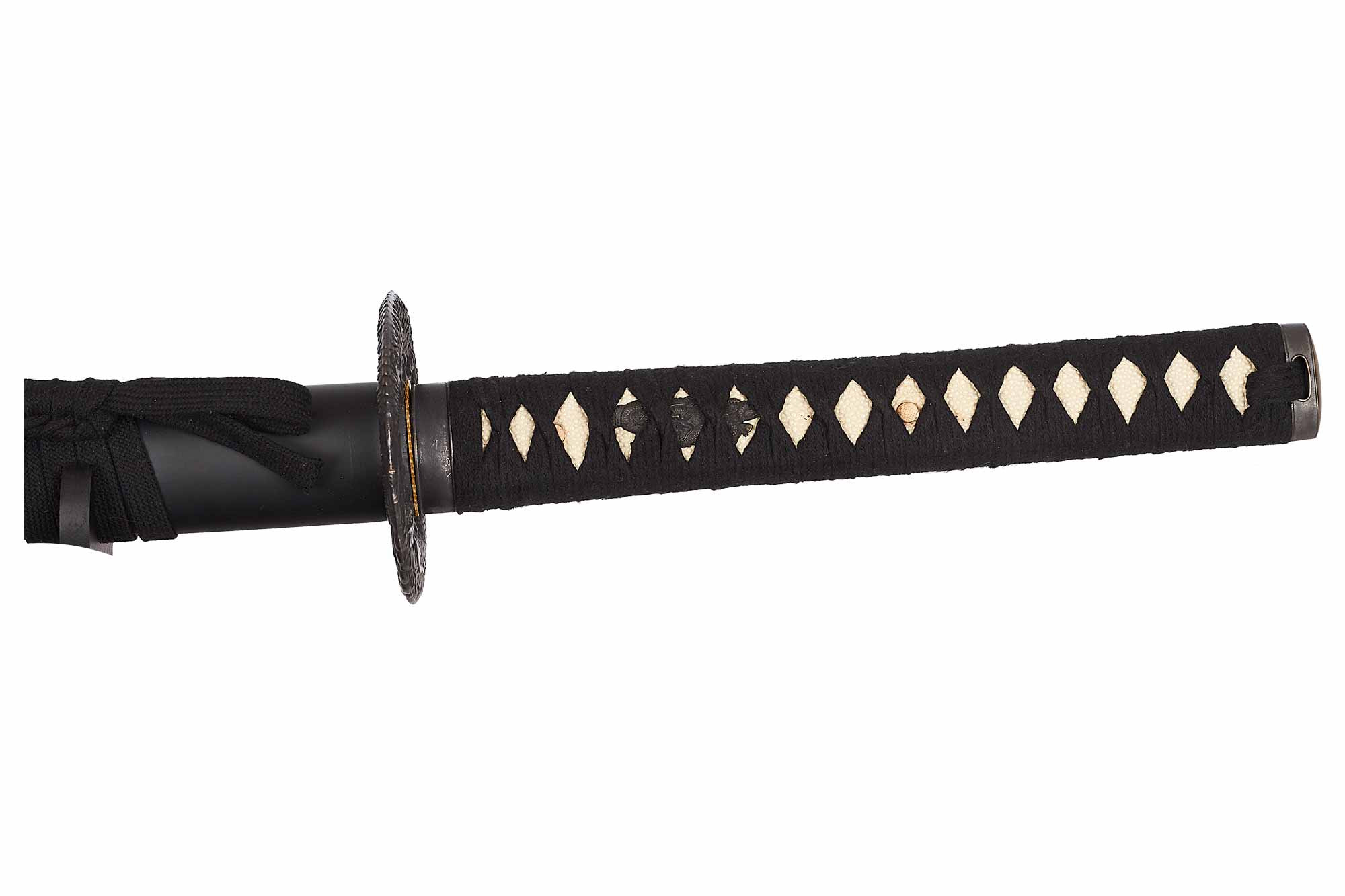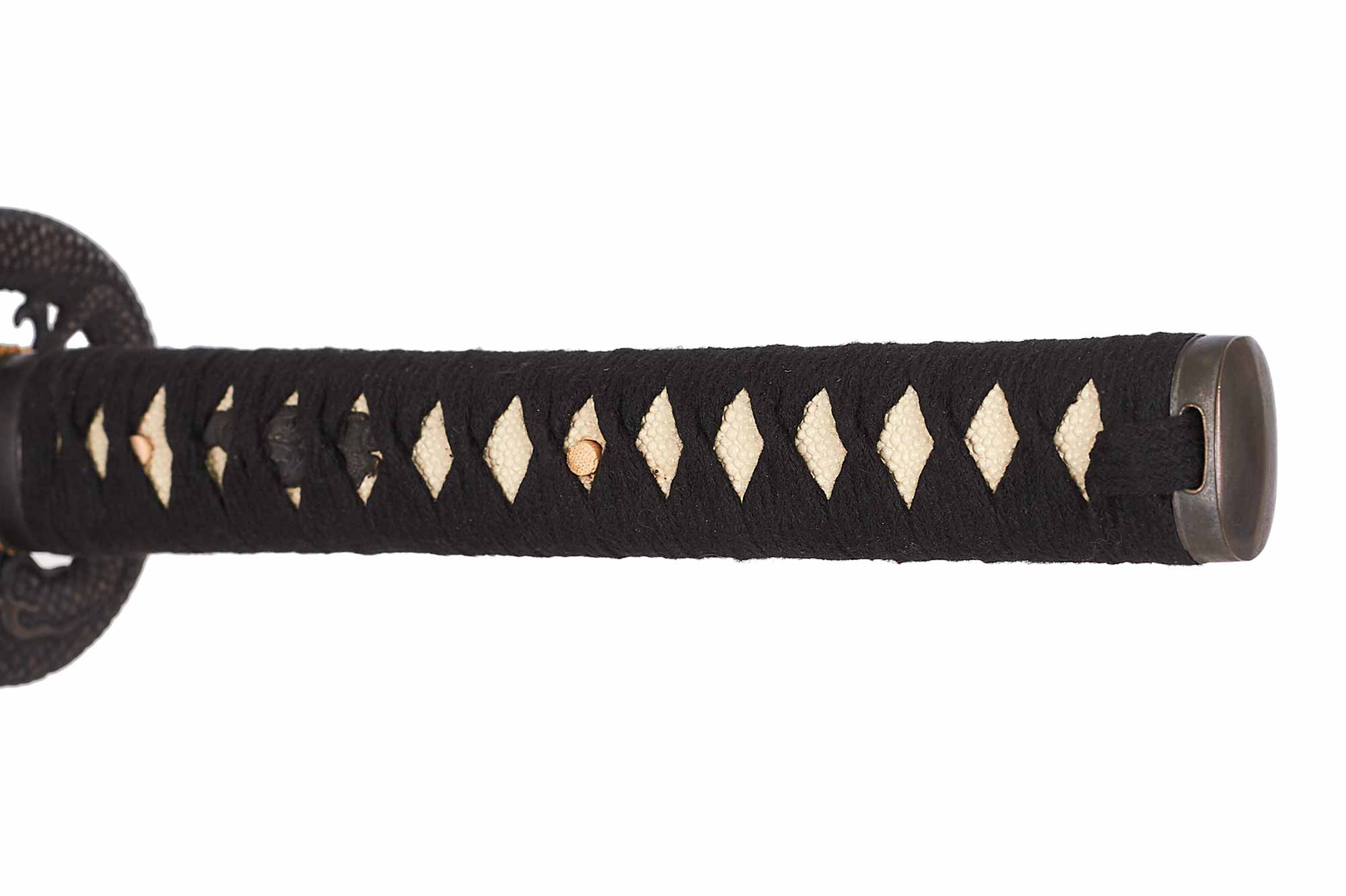Изготовитель потрудился даже украсить рукоять под цука-ито (оплёткой) традиционными фигурками - менуке, служившими своеобразными амулетами и позволявшими тактильно определить положение оружия в руке.