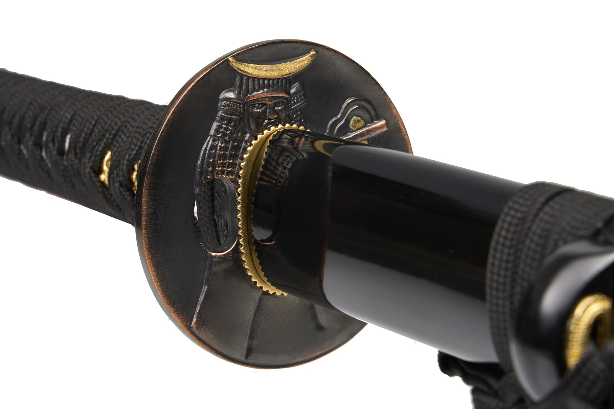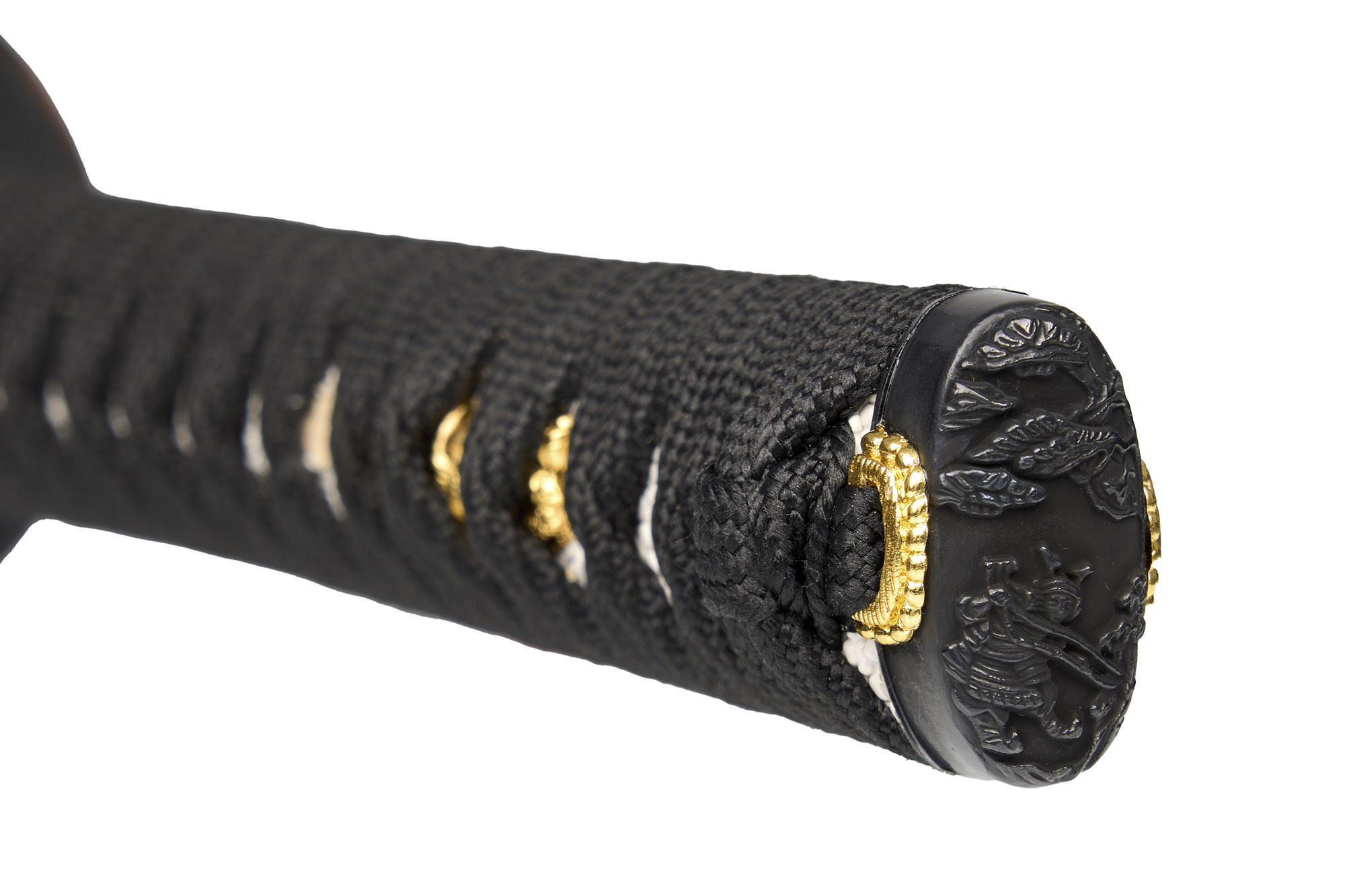 Цука-іто (обплетення руків’я) лаконічно чорне. Мекуги, менуке та імітація обтяжки зі шкіри ската (самегава) присутні, що забезпечує автентичний вигляд меча.