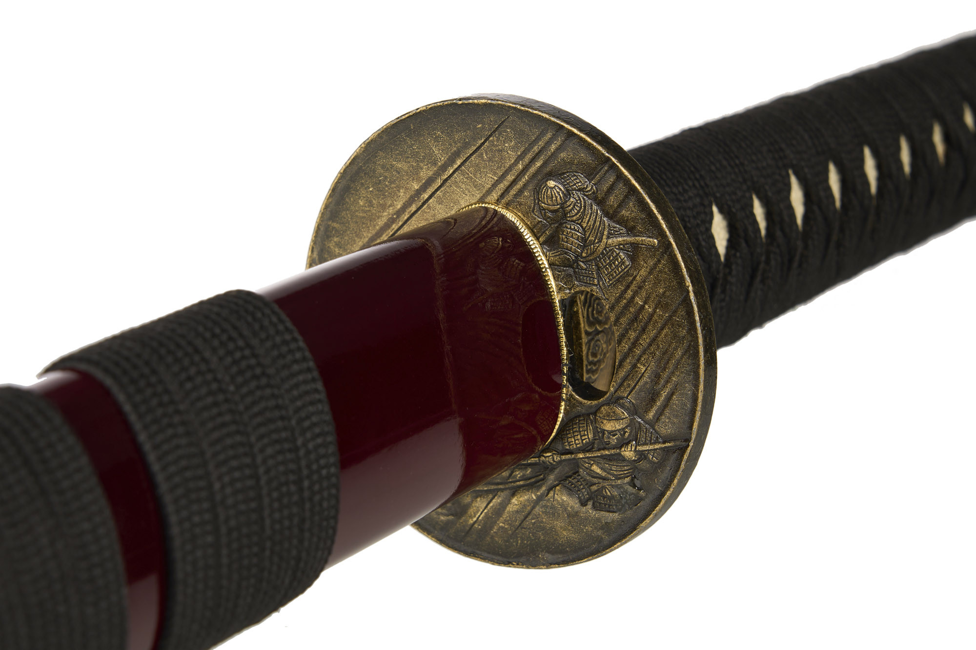 У повсякденному житті самураї не вітали надмірної яскравості та розкоші оздоблення та екіпірування. Стриманість вважалася чеснотою. Але неможливо не звернути увагу на яскраво-червоні піхви (сая) цієї катани!