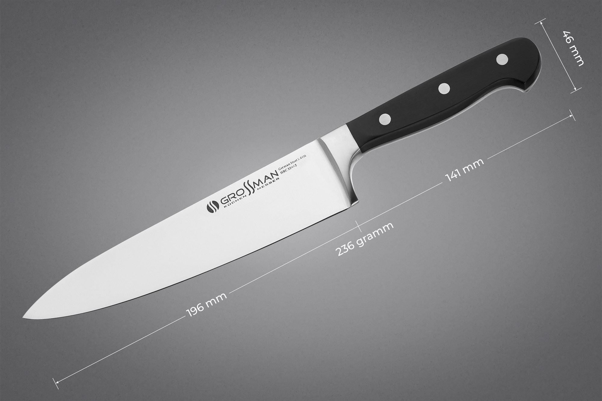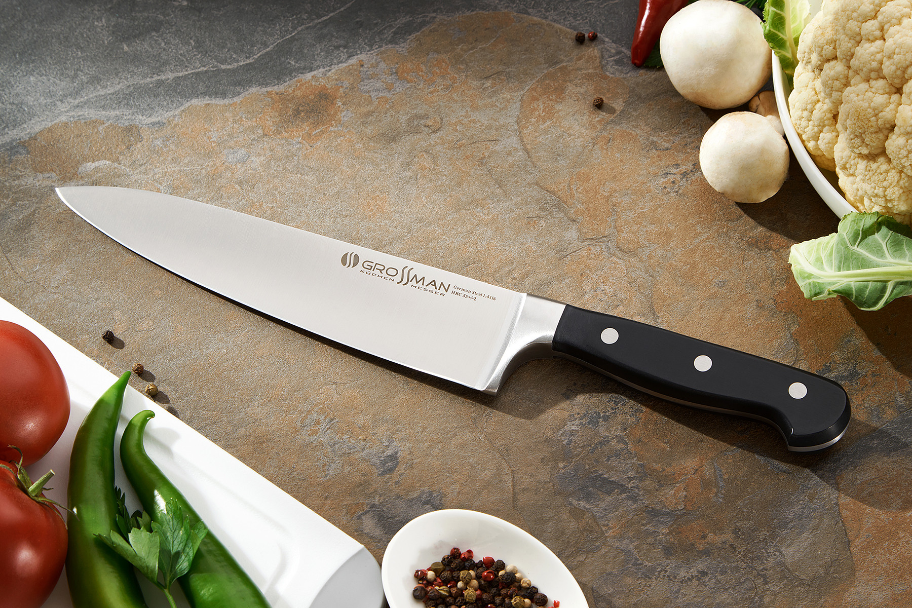 Ножі та клівера зі сталі 1.4116 – приклад справжньої європейської якості. Розумне та надійне вкладення ваших грошей. Ножі серії GROSSMAN ELITE PRO порадують вас у роботі та правильно прослужать вам довгі роки.