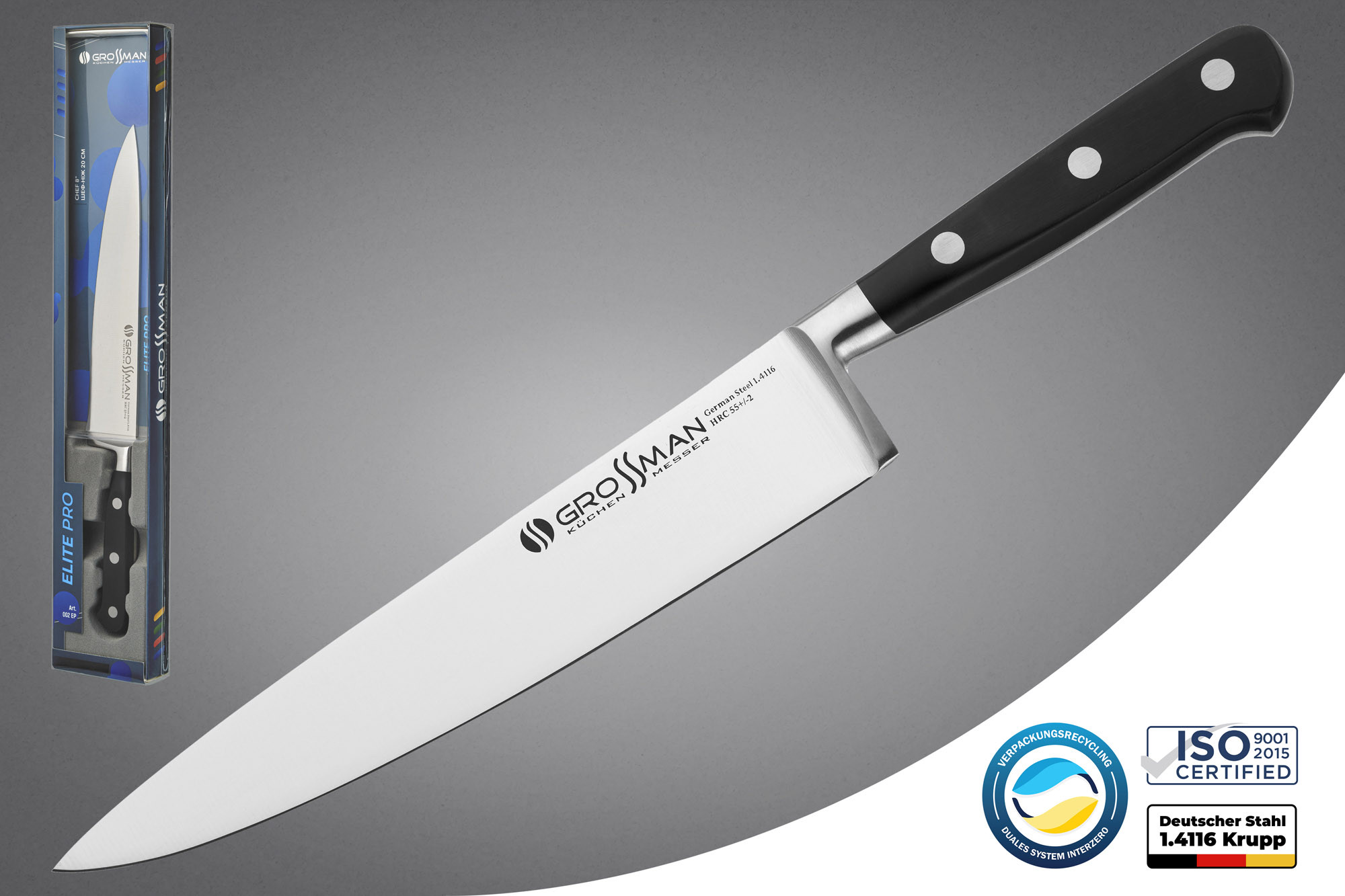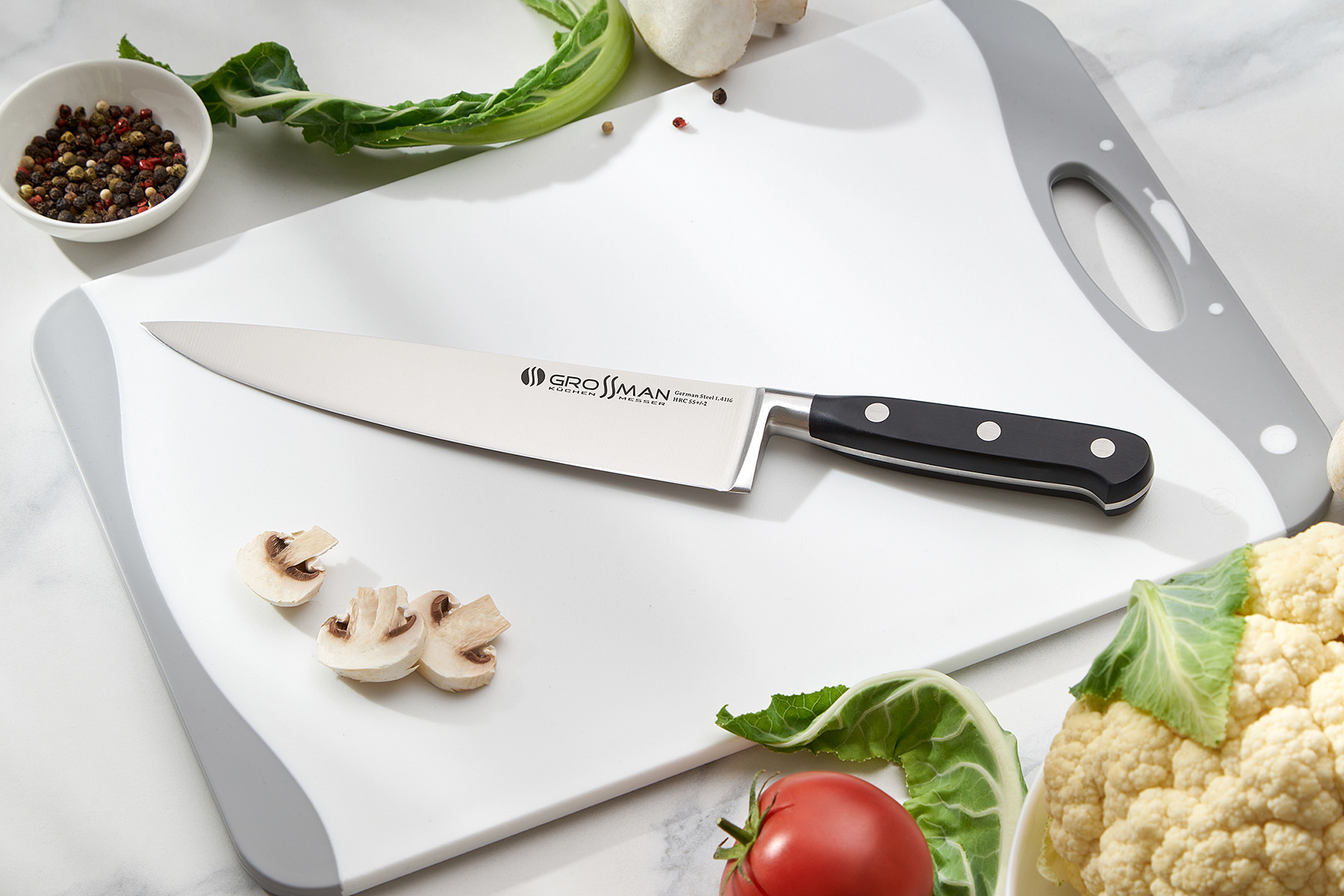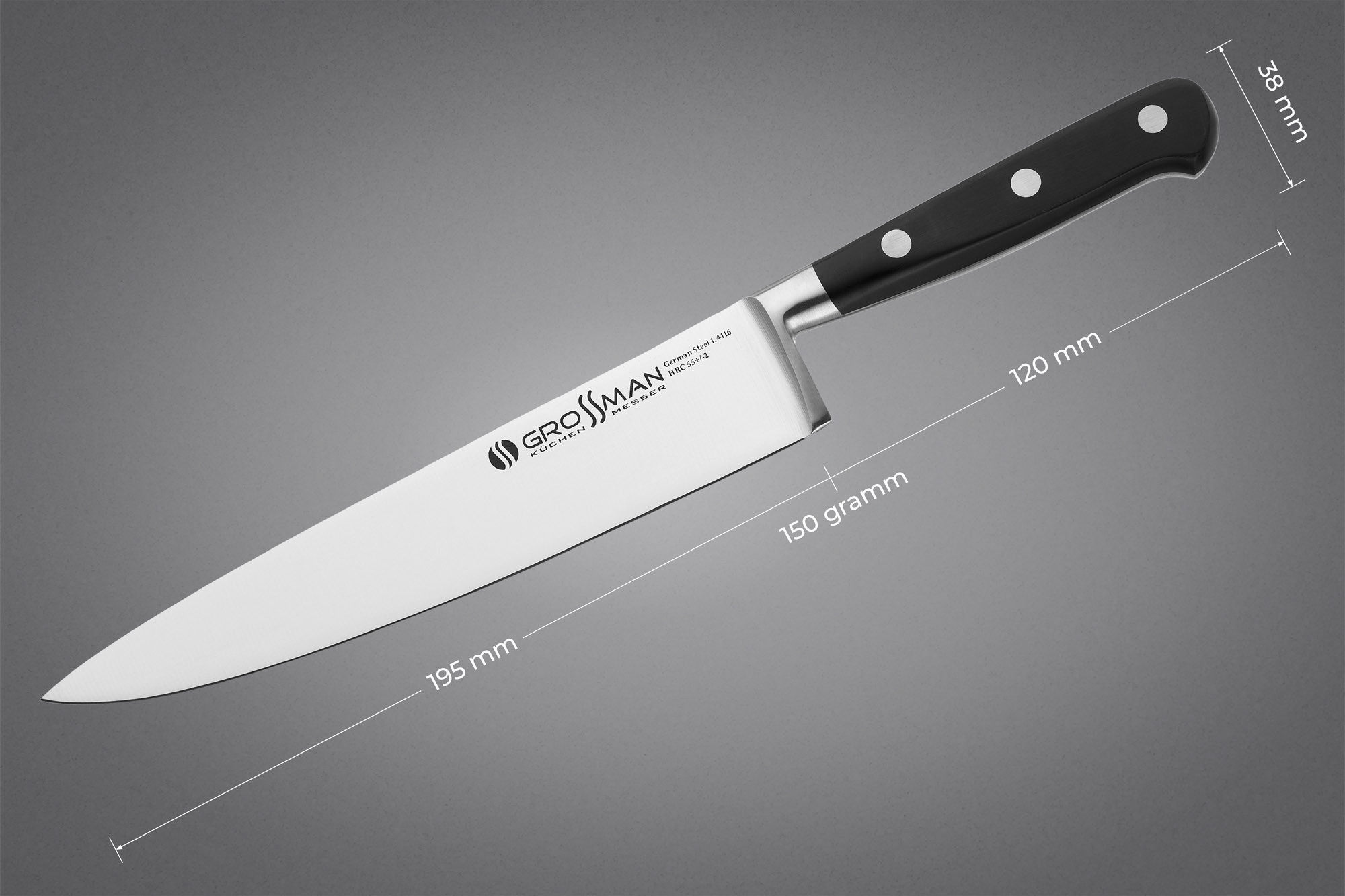 Ножі та клівера зі сталі 1.4116 – приклад справжньої європейської якості. Розумне та надійне вкладення ваших грошей. Ножі серії GROSSMAN ELITE PRO порадують вас у роботі та правильно прослужать вам довгі роки.