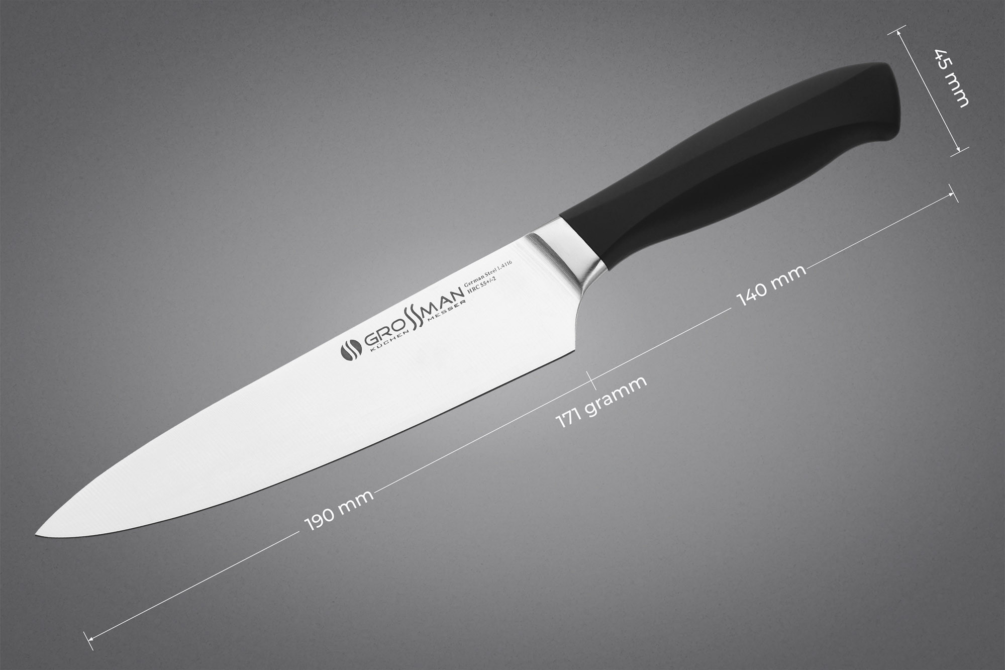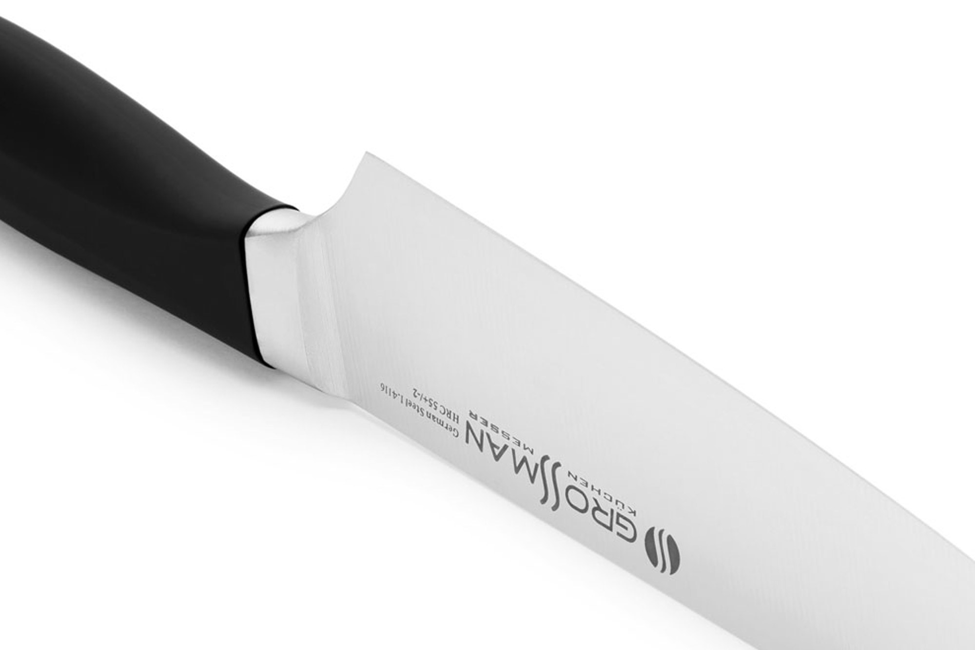 Ножі серії GROSSMAN HC добре збалансовані та зручні. Вони – щось рівнем вище, ніж більшість ножів на полицях у супермаркеті. Купуйте кухонний ніж GROSSMAN HC, почніть ним користуватися, і ви обов'язково відчуєте різницю.