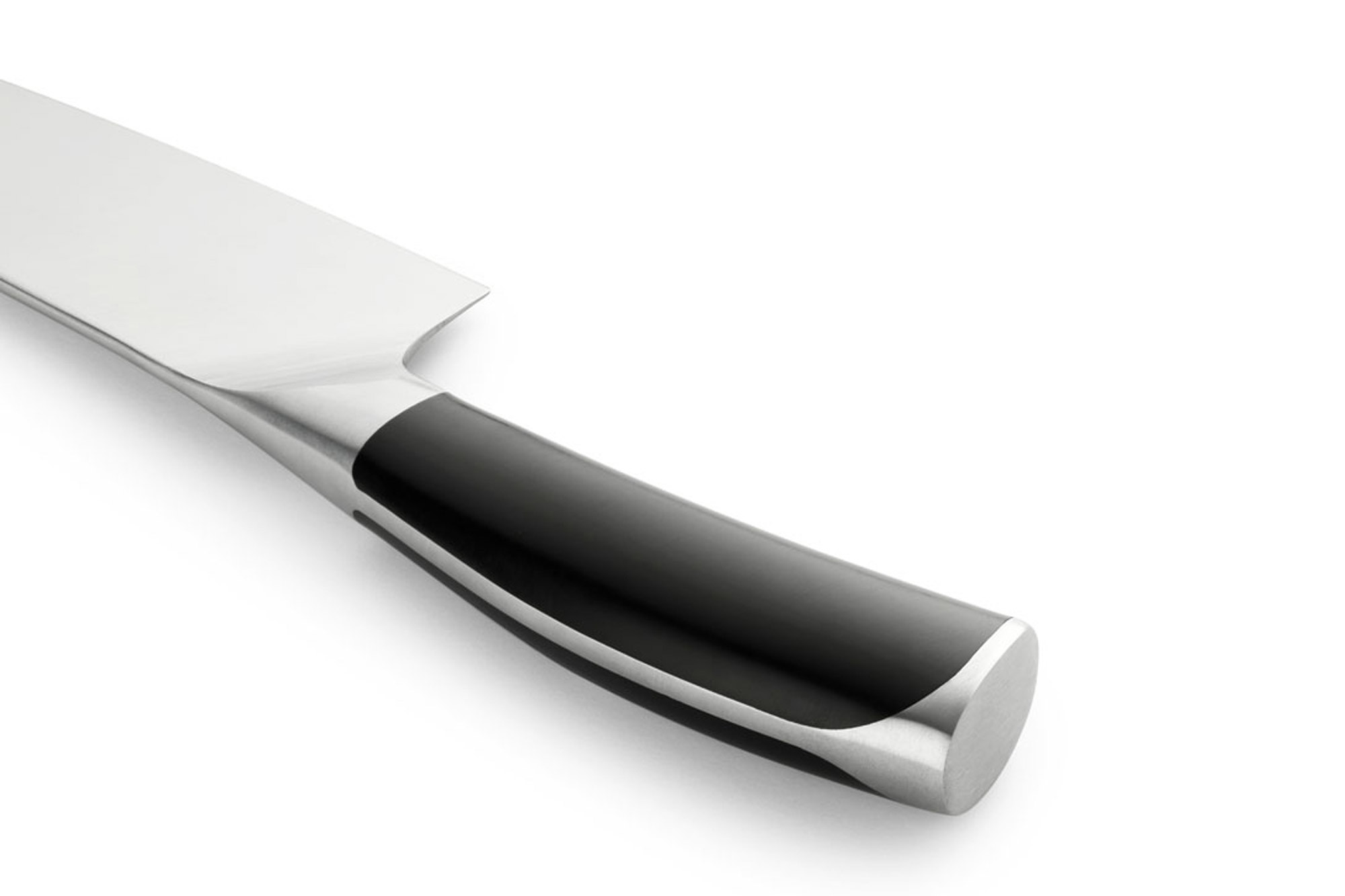 Руків'я ножів мають елегантний округлий контур з легким вигином, що забезпечує комфортний та надійний захват. Завдяки безшовній конструкції без заклепок, ножі добре збалансовані і приємно лежать в руці, а їх ергономічна форма дозволяє пальцям природно розміщуватися для зручного та впевненого хвату.