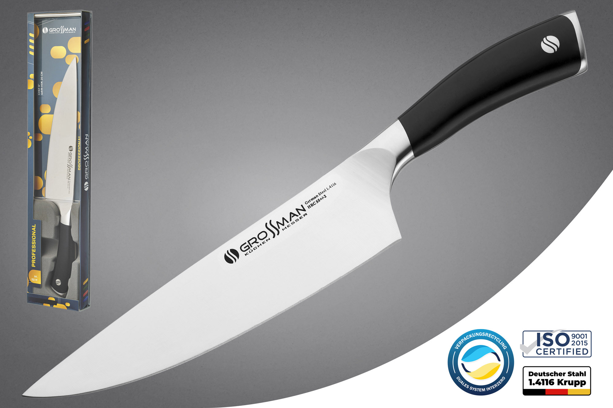 Ножі та клівера зі сталі 1.4116 – приклад справжньої європейської якості. Розумне та надійне вкладення ваших грошей. Ножі серії GROSSMAN ELITE PRO порадують вас у роботі та правильно прослужать вам довгі роки.