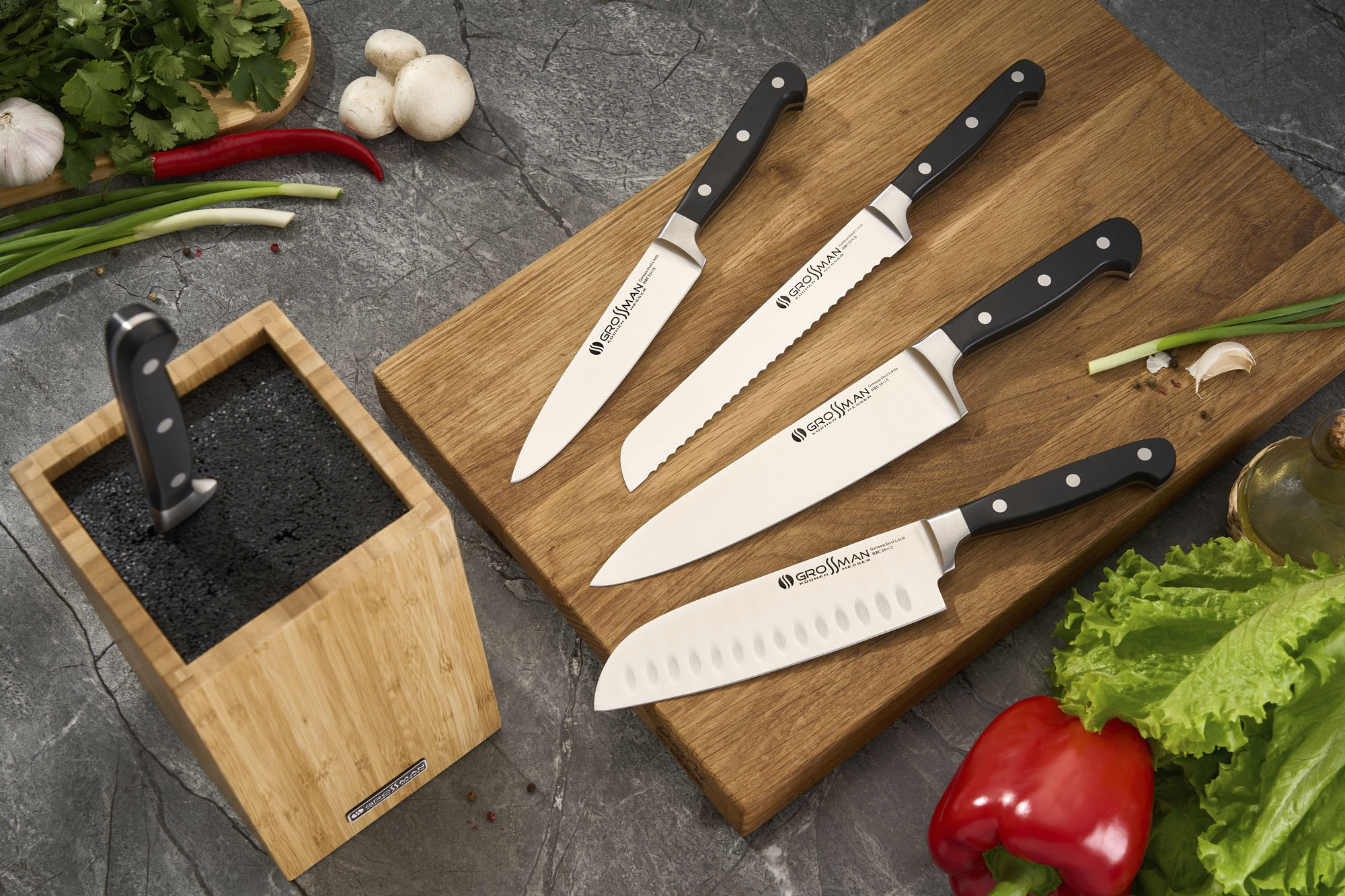 Ножі GROSSMAN Classic – це вибір для тих, хто цінує класику європейського стилю, неперевершену якість та зручність у роботі. Вони класичні за виглядом і сучасні за суттю, що робить їх відмінним варіантом як для професійних кухонь, так і для домашніх.