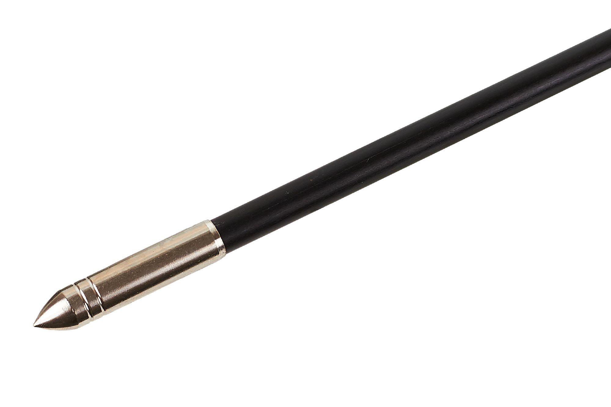Фибергласс, который используется для изготовления стрелы – это прочный композиционный материал на основе стекловолокнистого наполнителя. Не коробится, как дерево, не боится влаги. Также стрела снабжена оперением из винила, стальным прочным наконечником и пластиковым хвостовиком.