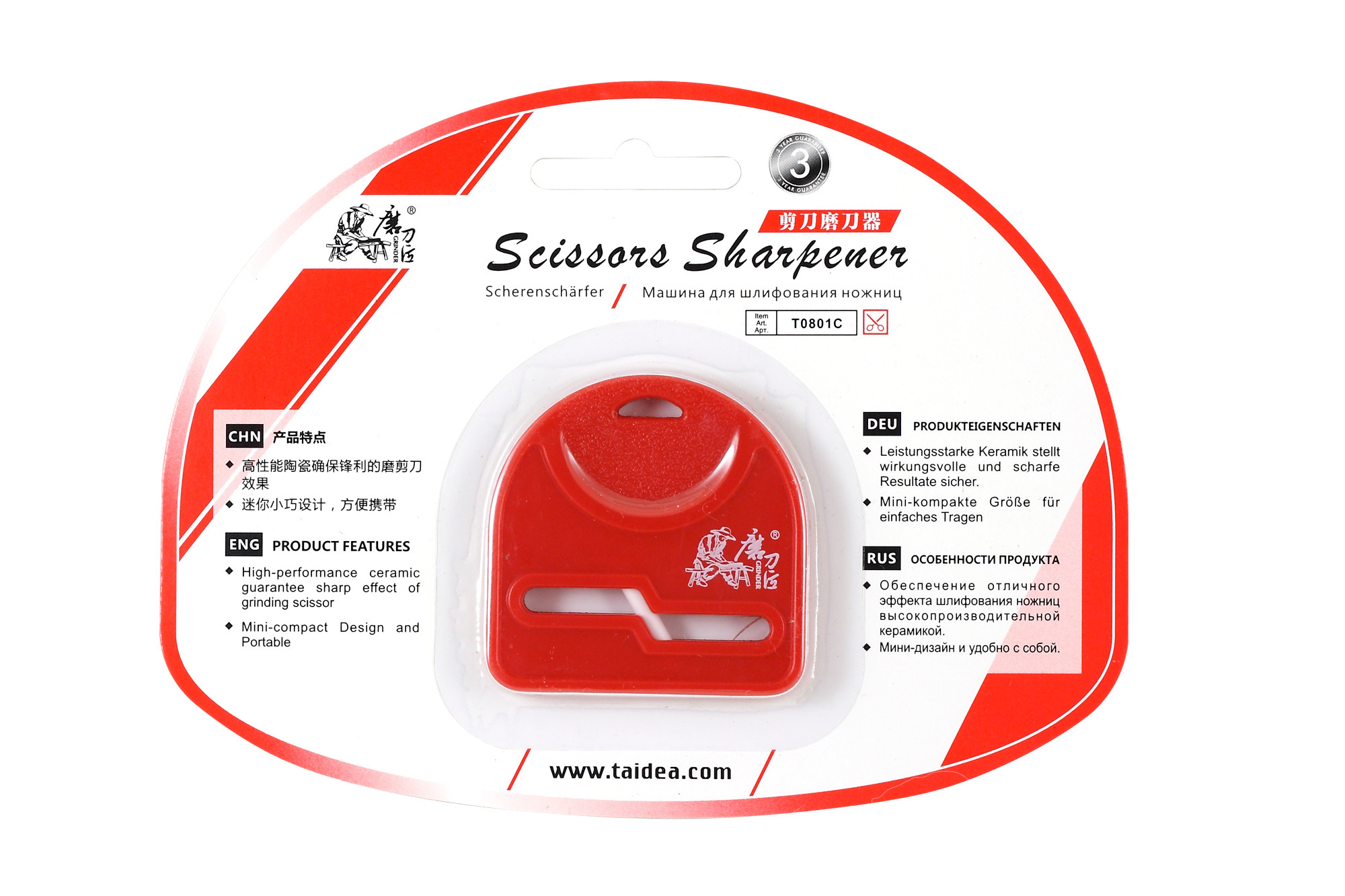 Точилка 0801 C – удобное приспособление с керамическими стерженьками для подточки и правки канцелярских, кухонных, портновских и других ножниц. Это очень компактная точилка, буквально карманного формата, что особенно удобно для тех, кто хочет держать свои ножницы все время острыми и подтачивает их регулярно. Однако, следует учитывать, что ввиду своей компактности, точилка для ножниц 0801 C, не подходит для крупных и толстых ножниц.