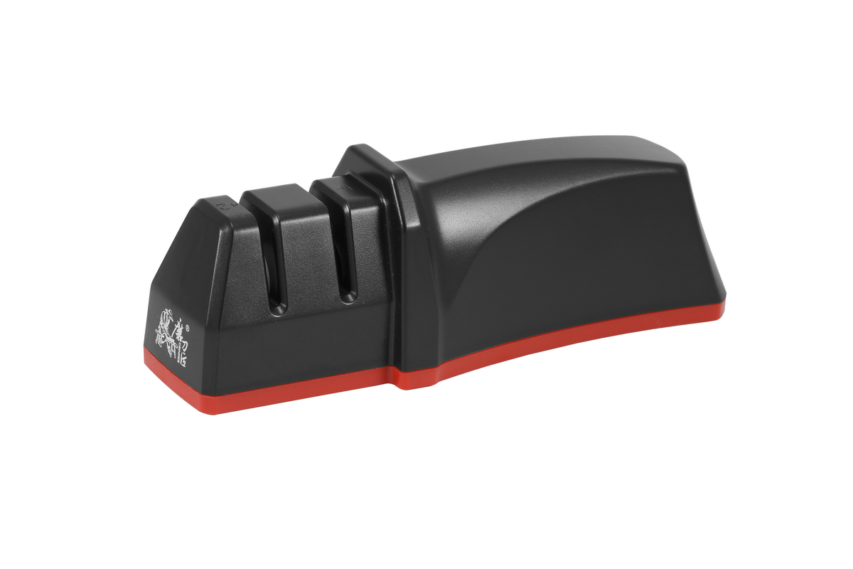Двух ступенчатая механическая точилка дискового типа. Такой тип точилок является продуктом эволюционного развития продольных стержневых точилок. Основное отличие такой точилки – вращающийся рабочий элемент, применяемый в устройстве. Установленный под углом диск вращается вместе с поступательным движением клинка и взаимодействует с режущей кромкой ножа. Пользоваться такой точилкой невероятно просто. В зависимости от степени затупления, нож вставляется в необходимый слот и после нескольких возвратно поступательных движений ножом, он снова остр как никогда.
