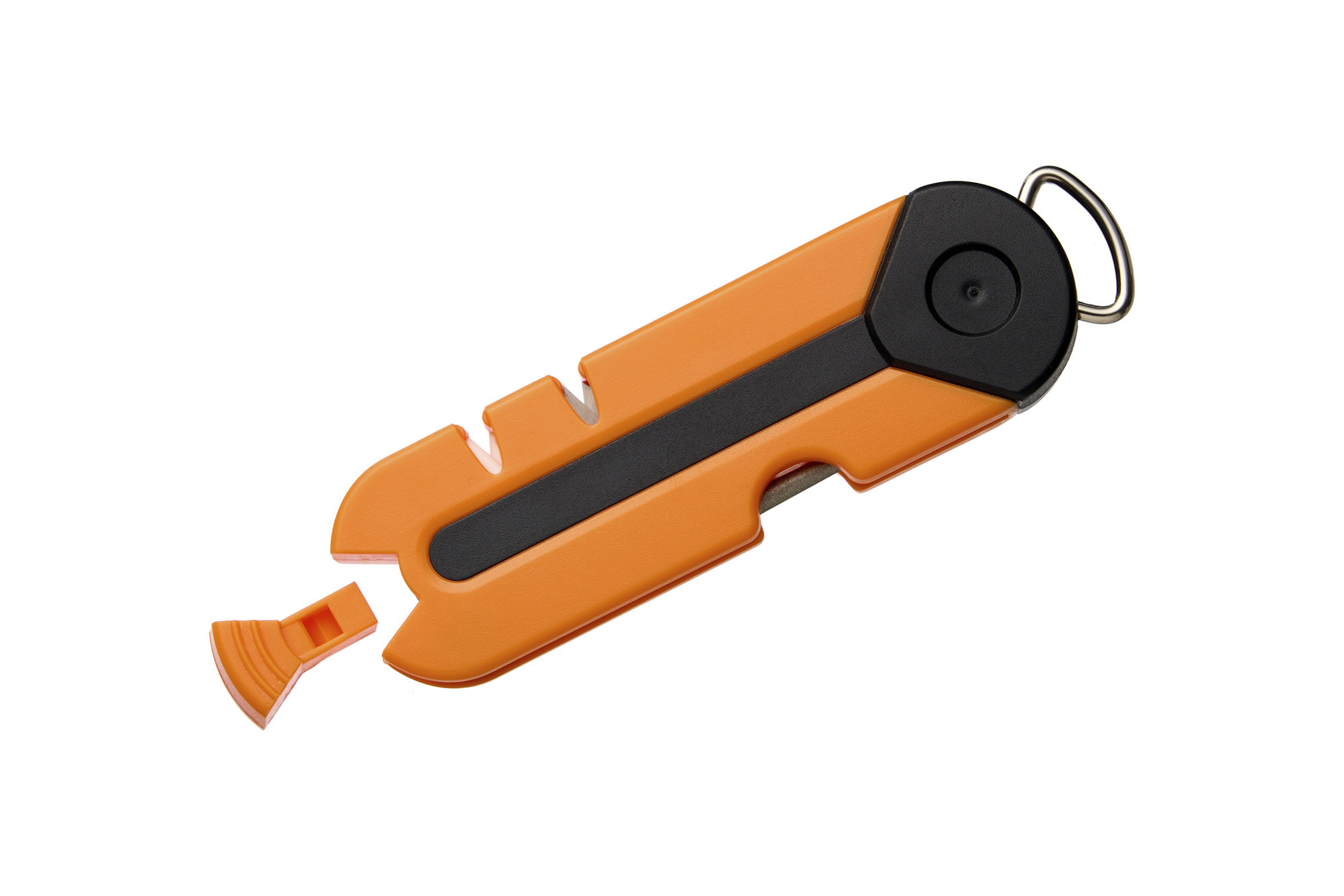 - Слот з твердосплавним заточувальним елементом так званого “скандинавського типу”, який стане у нагоді для грубого та швидкого підточування у польових умовах ріжучої кромки ножа, що помітно затупилась.