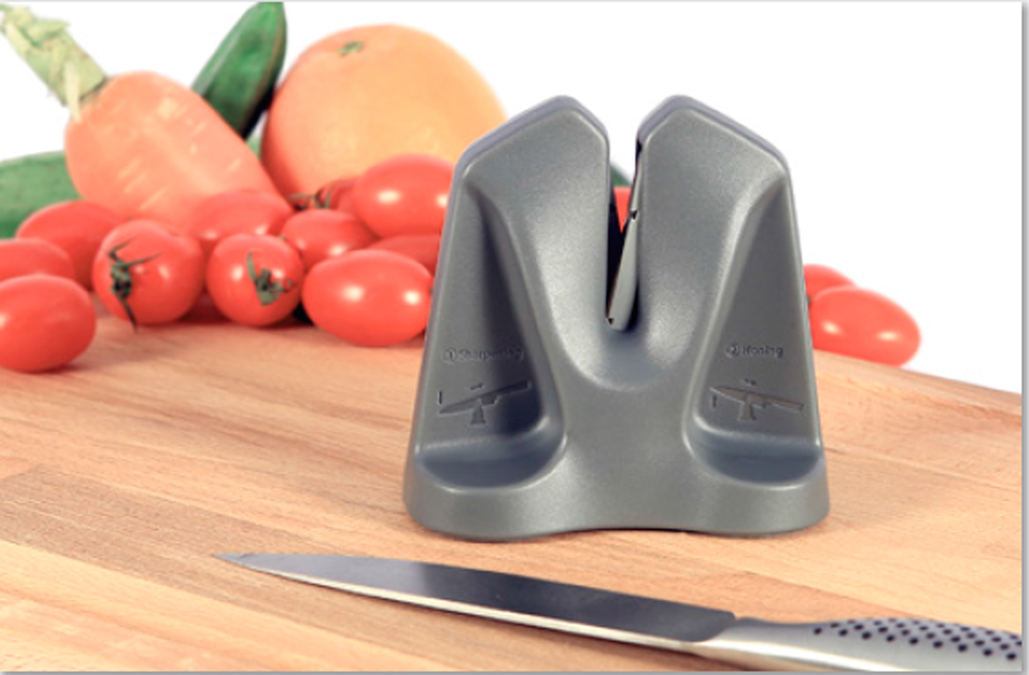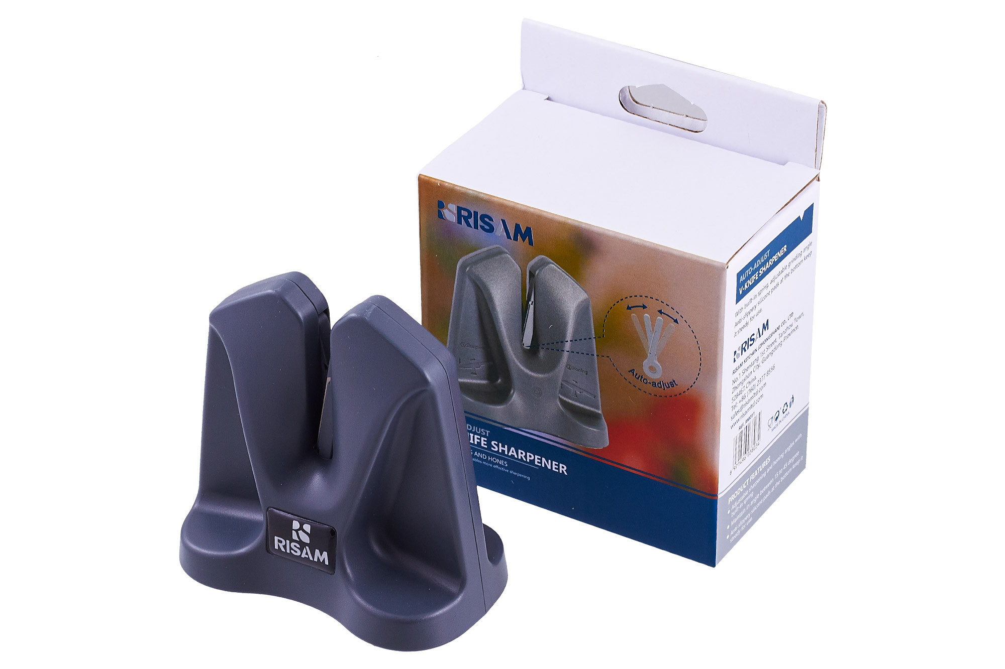 RM 011 – настольная точилка компактного формата, предназначенная для заточки ножей, выпрямления и шлифовки режущей кромки клинков. Силиконовые накладки на основании препятствует скольжению точильного приспособления по разным поверхностям.