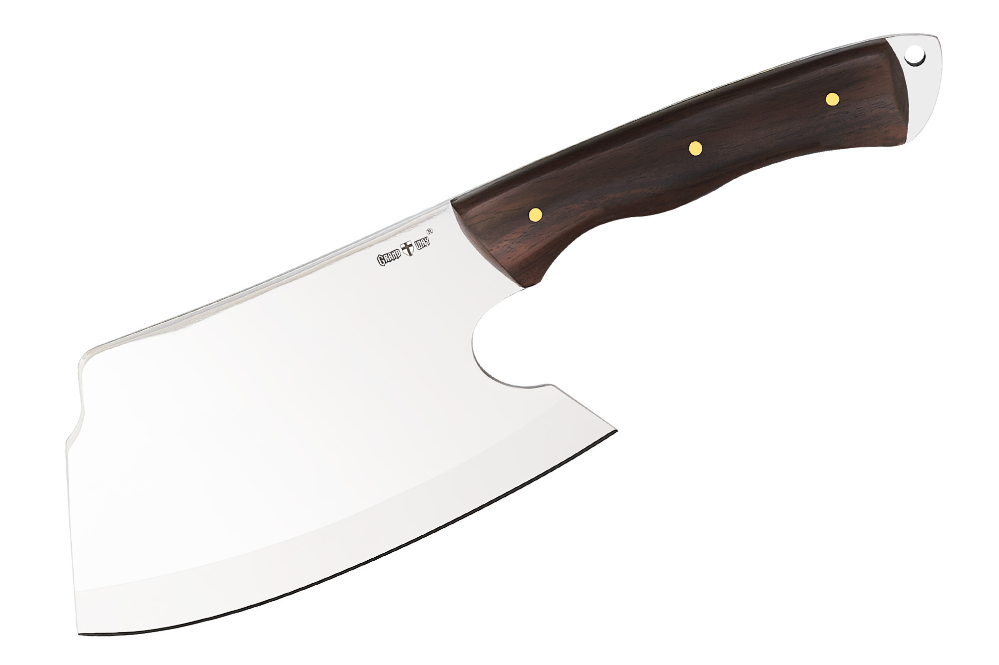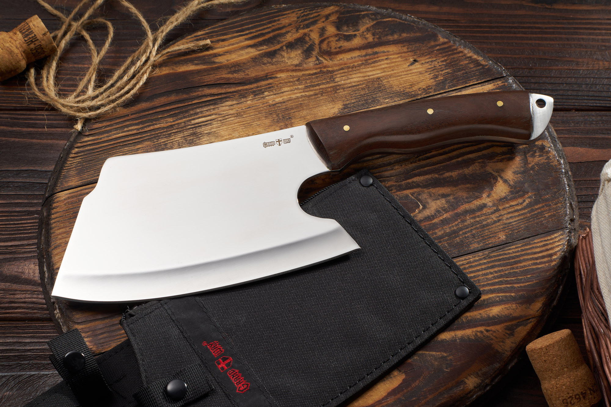 При всей его практической функциональности, этому секачу не откажешь в определённой красоте. Его сталь отполирована в зеркало, а деревянные накладки тщательно обработаны и вскрыты лаком. Такой солидный инструмент мясника не стыдно повесить на видном месте в любой кухне. Да и подарок из него получится вполне презентабельный.